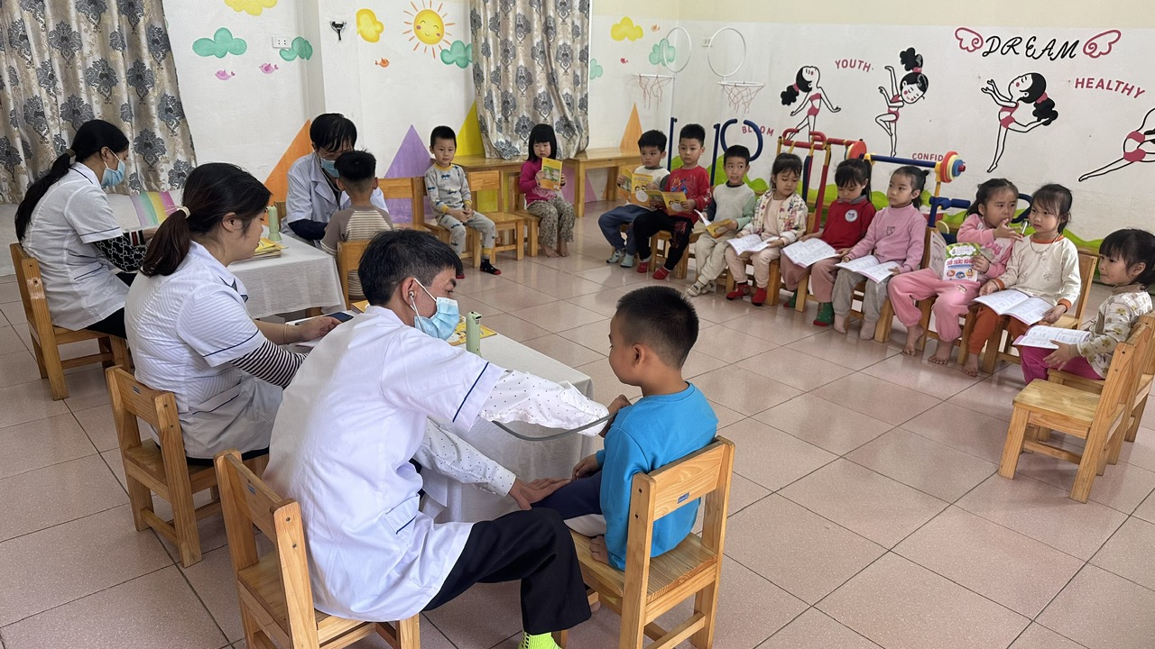Công tác chăm sóc sức khoẻ trẻ luôn được nhà trường đặc biệt quan tâm. Chiều ngày 19/1/2026 trường mầm non B Ngũ Hiệp phối hợp với trung tâm y tế xã Nam Phù tổ chức khám sức khoẻ định kì cho 100% các cháu với những nội dung khám răng, tai, mũi, họng, kiểm tra tim, phổi và một số bệnh liên quan đến đường hô hấp và da liễu. Dưới đây là hình ảnh khám sức khoẻ định kì tại lớp MGN B1 trường Mầm non B Ngũ Hiệp .