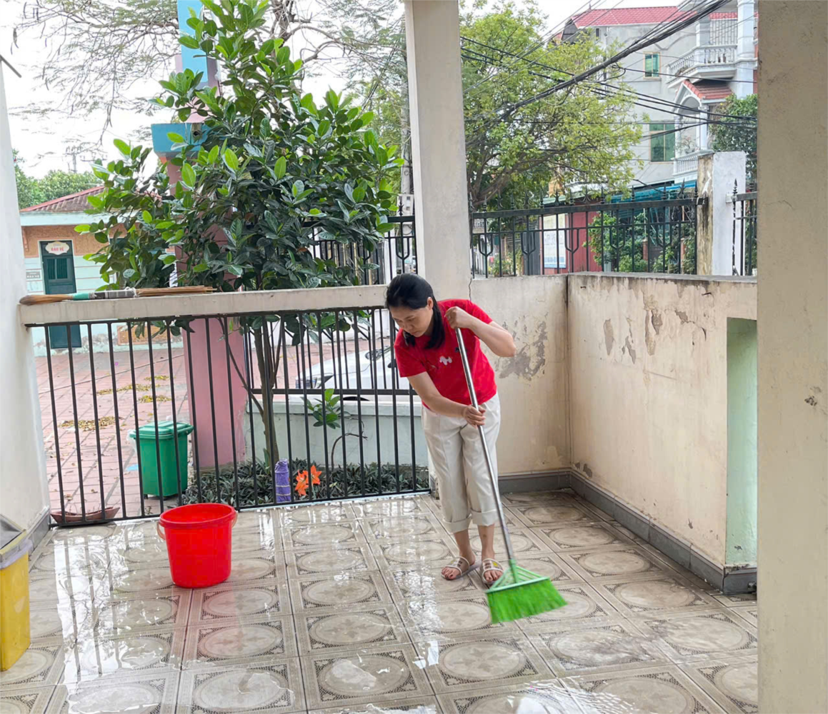 Sau khi nhà trường phun thuốc muỗi để phòng bệnh, các cô giáo lớp A1 đã nhanh chóng bắt tay vào tổng vệ sinh để đón các con trở lại. Các cô mở toang cửa sổ cho thông thoáng khí, tỉ mỉ lau chùi từng bộ bàn ghế, kệ đồ chơi và tay nắm cửa bằng dung dịch sát khuẩn an toàn. Toàn bộ sàn nhà được lau dọn sạch sẽ, đảm bảo không còn dư lượng hóa chất bám lại gây ảnh hưởng đến sức khỏe trẻ nhỏ. Các loại đồ dùng học tập, ca cốc và khăn mặt cũng được đem đi giặt sạch, hấp sấy cẩn thận để loại bỏ hoàn toàn mùi thuốc. Sự tận tâm của các cô giúp lớp A1 trở nên sạch bóng, thơm tho, tạo môi trường học tập an toàn tuyệt đối cho các bé.