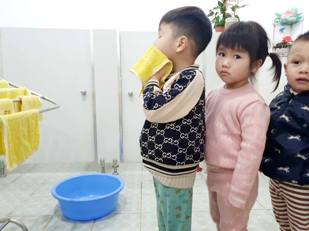 Đối với trẻ mầm non việc giáo dục ý thức vệ sinh cá nhân sẽ giúp trẻ khỏe mạnh, phòng chống bệnh tật và hình thành thói quen tốt trong sinh hoạt. Giáo dục vệ sinh cho trẻ đặc biệt là rửa tay (trước khi ăn, sau khi ăn xong,khi tay bẩn, sau khi đi vệ sinh) và lau mặt ( trước và sau khi ăn xong) sẽ giúp trẻ có thói quen vệ sinh, phòng tránh được các bệnh . Để tạo được thói quen cho trẻ ngày từ đầu năm học giáo viên đã dành nhiều thời gian hướng dẫn trẻ kỹ năng rửa tay và lau mặt thường xuyên và thực hiện, mọi lúc mọi nơi. Hãy cùng theo dõi xem các bạn nhỏ lớp D2 rửa tay và lau mặt như thế nào nhé
