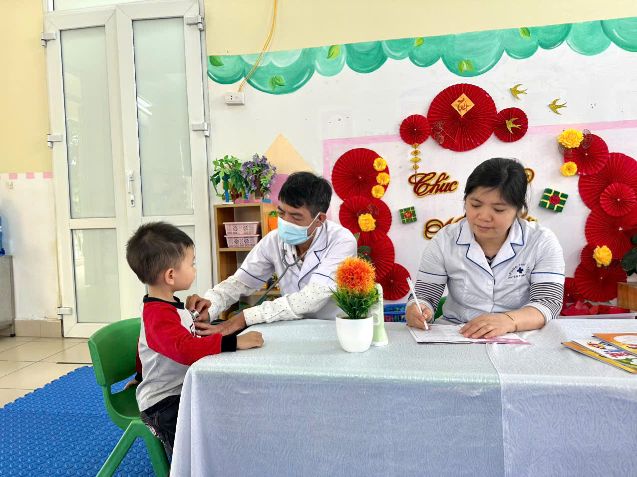 Hôm nay, các con lớp C3 Trường Mầm non B Ngũ Hiệp đã được tham gia buổi khám sức khỏe định kỳ do các y, bác sĩ của Trung tâm Y tế xã Nam Phù trực tiếp về thăm khám. Trong buổi khám, các con được kiểm tra cân nặng, chiều cao, tai – mũi – họng và tư vấn chăm sóc sức khỏe phù hợp với lứa tuổi. Các bé rất ngoan ngoãn, mạnh dạn và hợp tác tốt với các cô chú y tế. Hoạt động này giúp nhà trường và phụ huynh nắm rõ hơn tình hình sức khỏe của trẻ, góp phần chăm sóc và bảo vệ sức khỏe cho các con ngày càng tốt hơn. 🌸