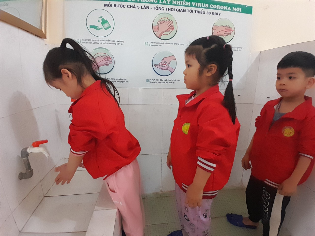 Sau đây là một số hình ảnh của các bé lớp MGN B1 trong hoạt động vệ sinh rửa tay, rửa mặt: