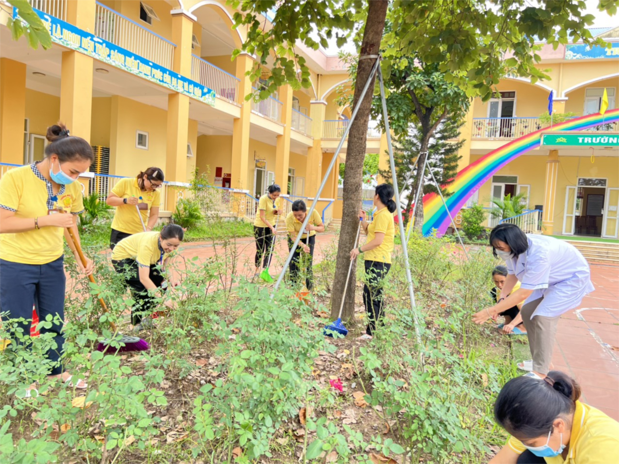 Trước diễn biến bệnh sốt xuất huyết gia tăng mạnh 7h30 sáng 24.9.2022 trường Mầm non B xã Ngũ Hiệp triển khai chiến dịch VSMT, diệt bọ gậy phòng chống SXH. Nhân viên Y tế, hướng dẫn kiểm tra các điểm nguy cơ phát sinh lăng quăng, bọ gậy và cách xử lý, thu gom dụng cụ phế thải, không để nước đọng để tránh muỗi đẻ trứng, diệt bọ gậy, phát quang cây cối trong khuôn viên nhà trường, khơi thông cống rãnh.