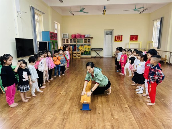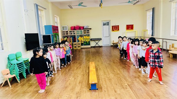 Giờ thể dục: Đi theo đường ngoằn nghèo của lớp D2