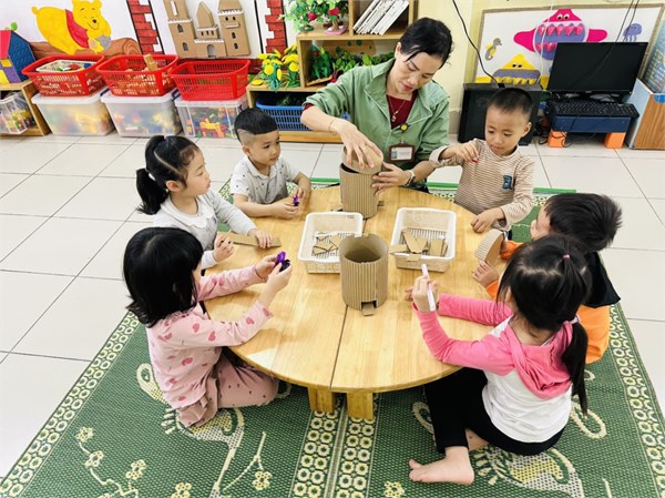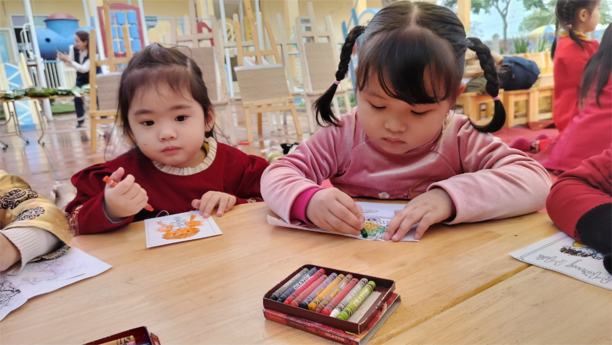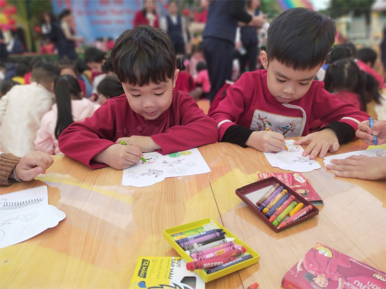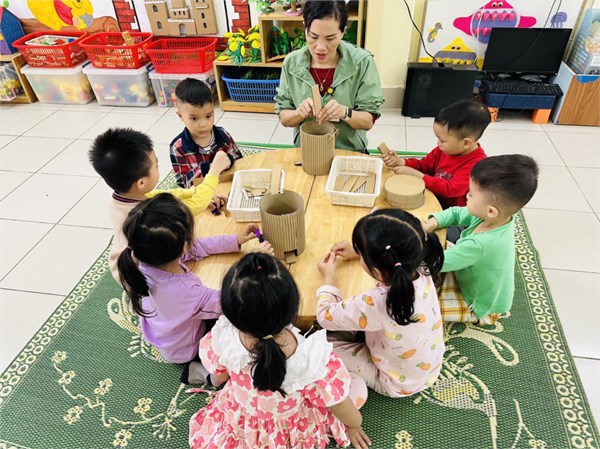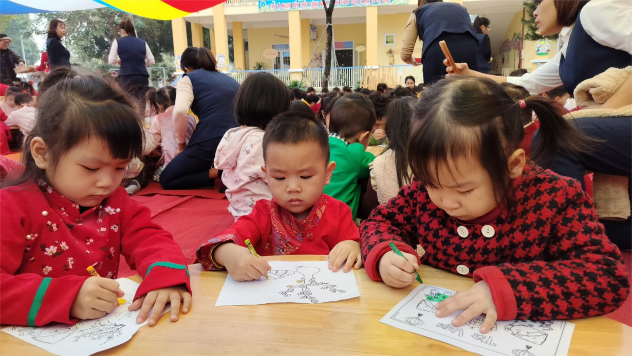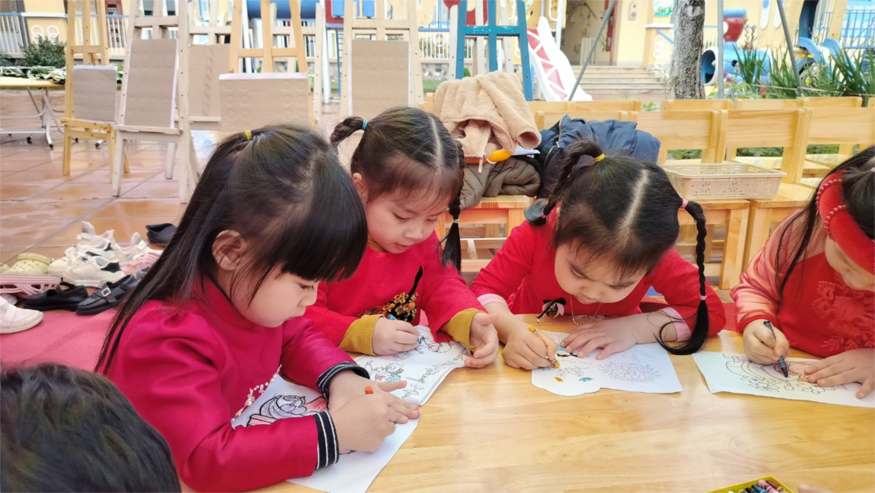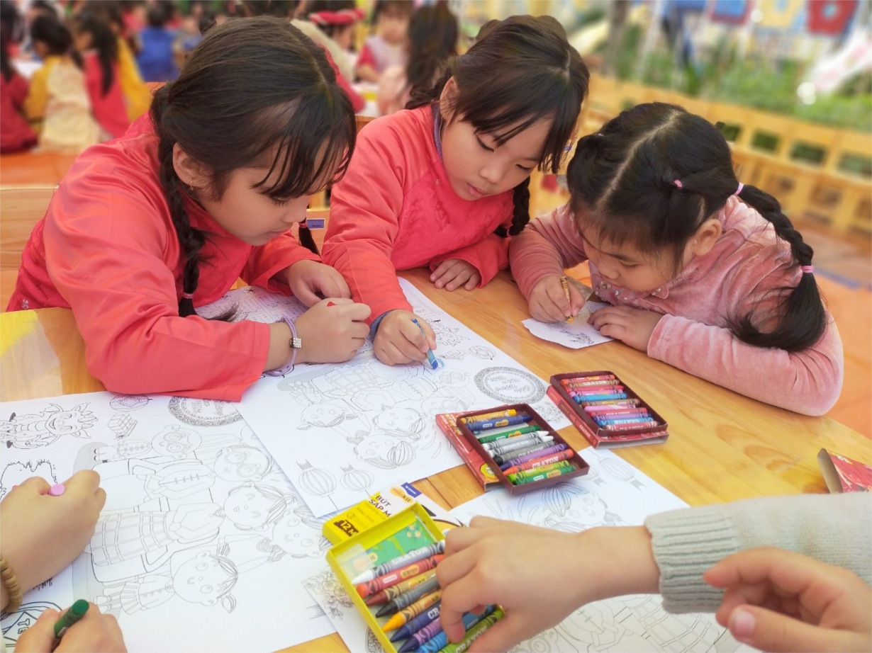 Các bạn nhỏ lớp C2 tham gia hoạt động "Bé với nghệ thuật dân gian " đón Xuân Giáp Thìn