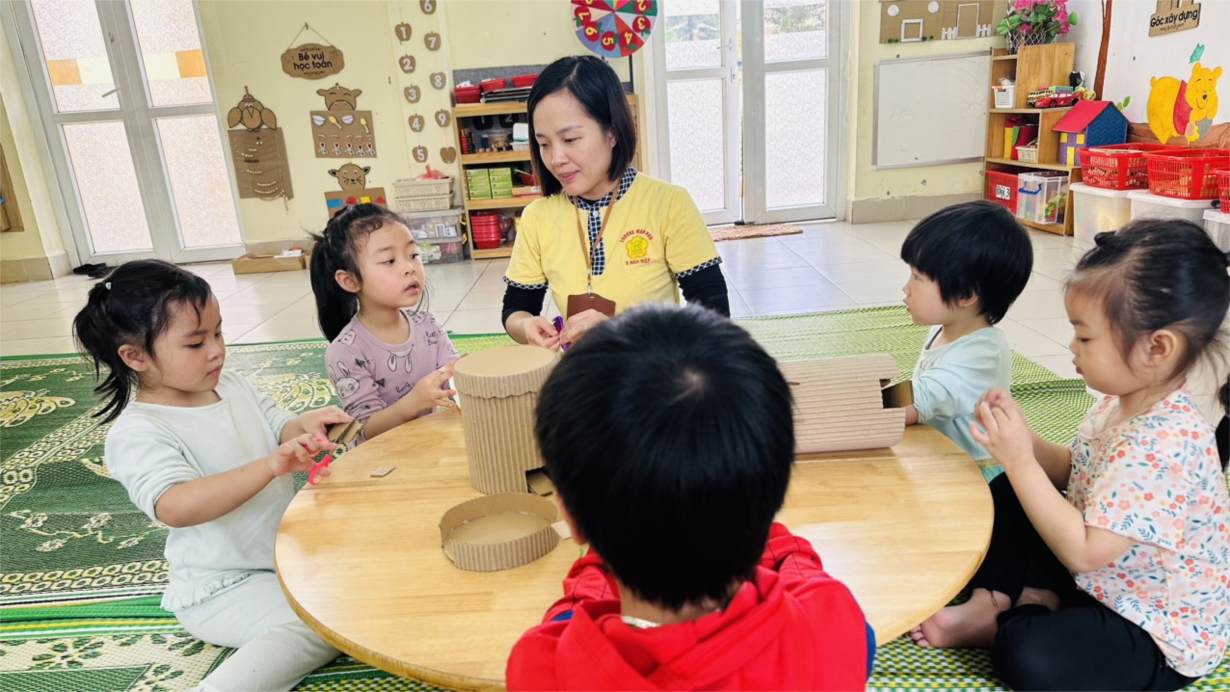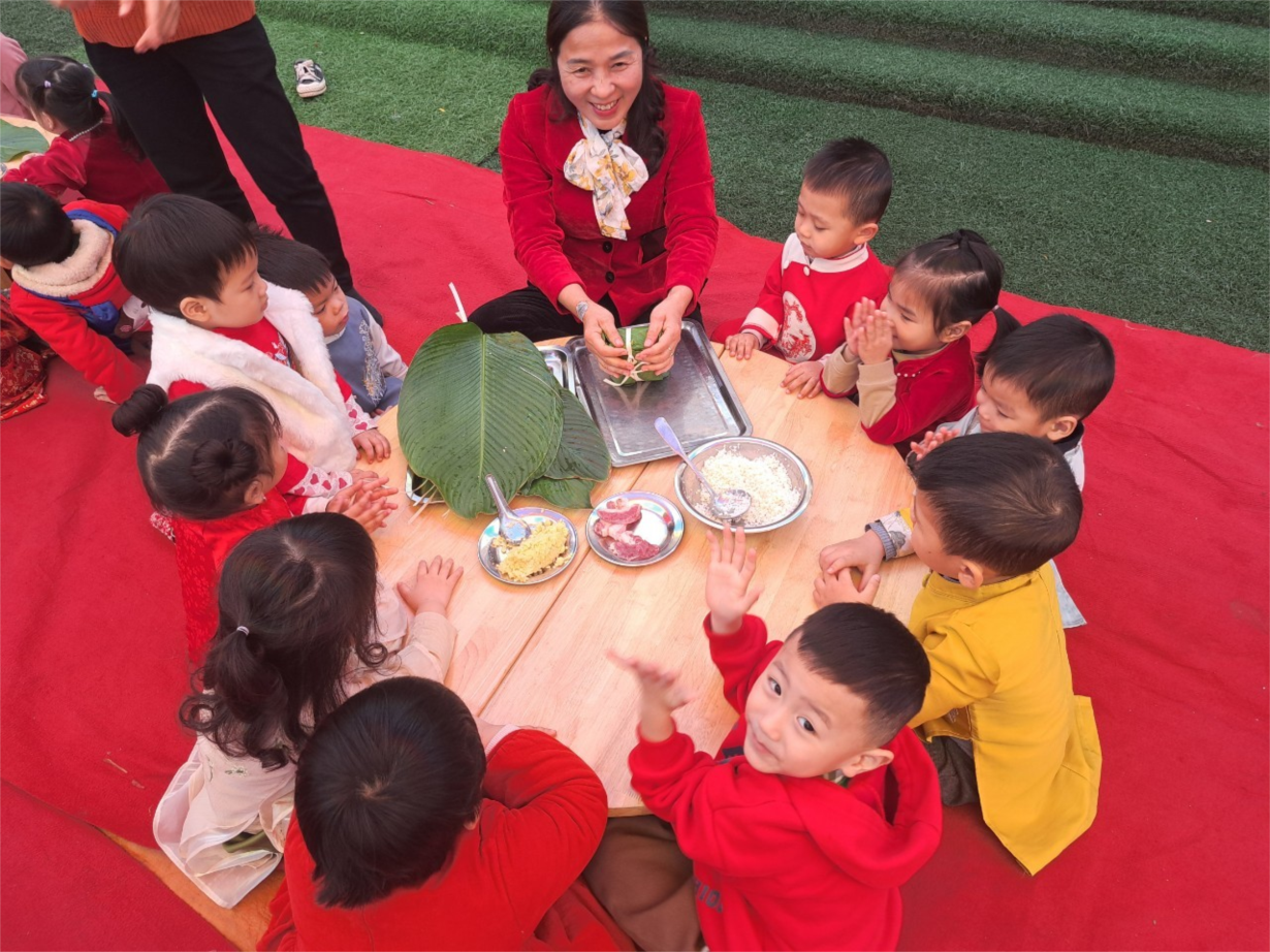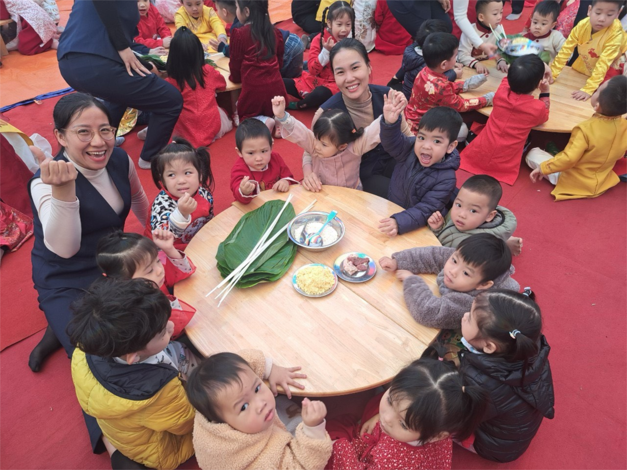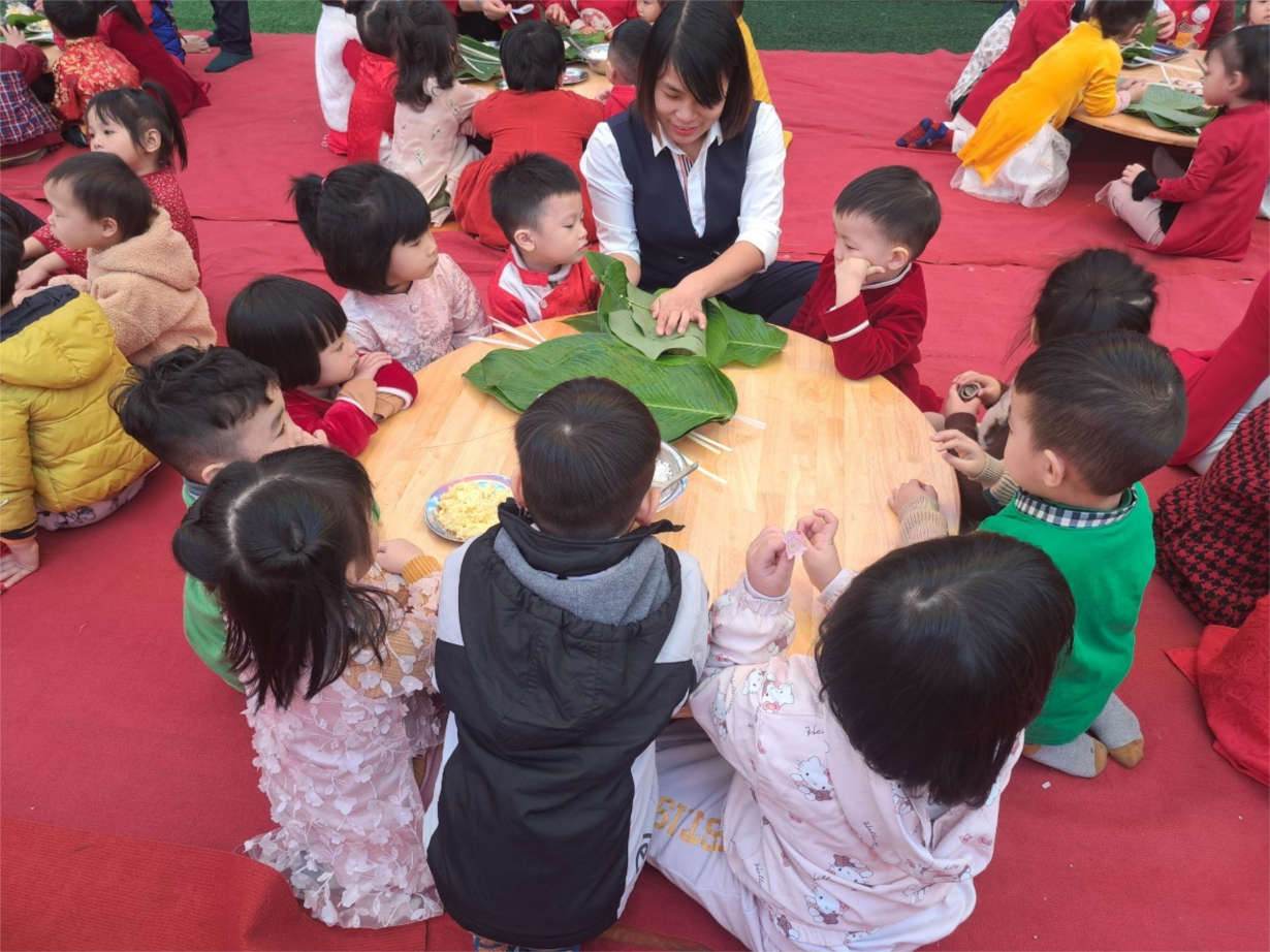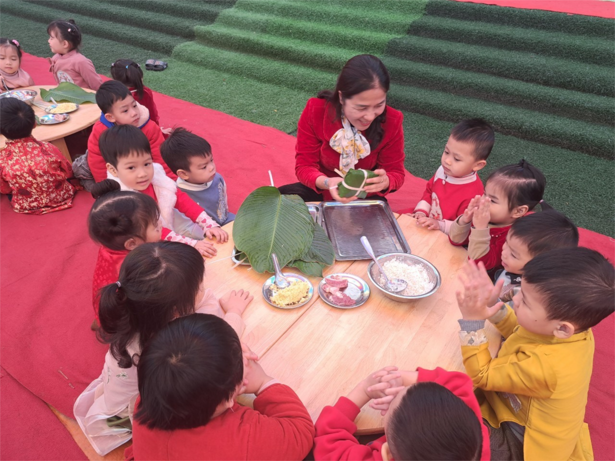 Các bé lớp B4 vui gói bánh chưng và làm thiệp chúc mừng năm mới Giáp Thìn 2024