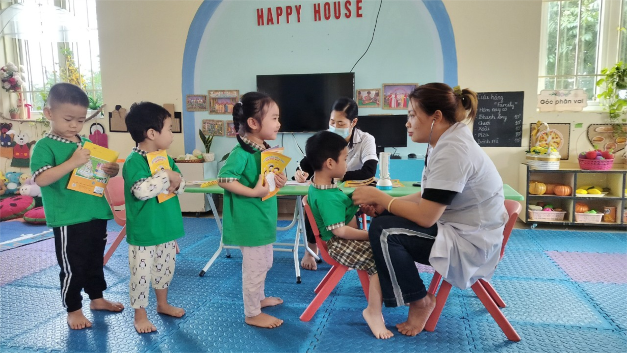 Hôm nay các bạn nhỏ lớp mẫu giáo bé C2 được các bác sỹ thăm khám sức khỏe, bạn nào cũng vui háo hứng lắm ạ
