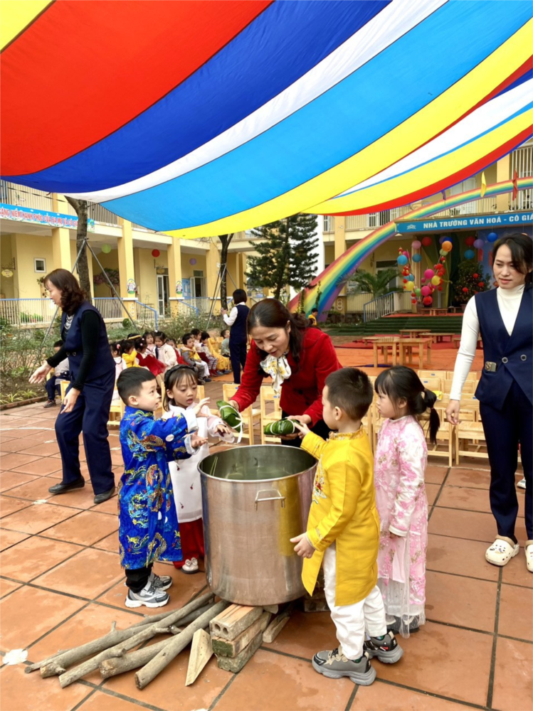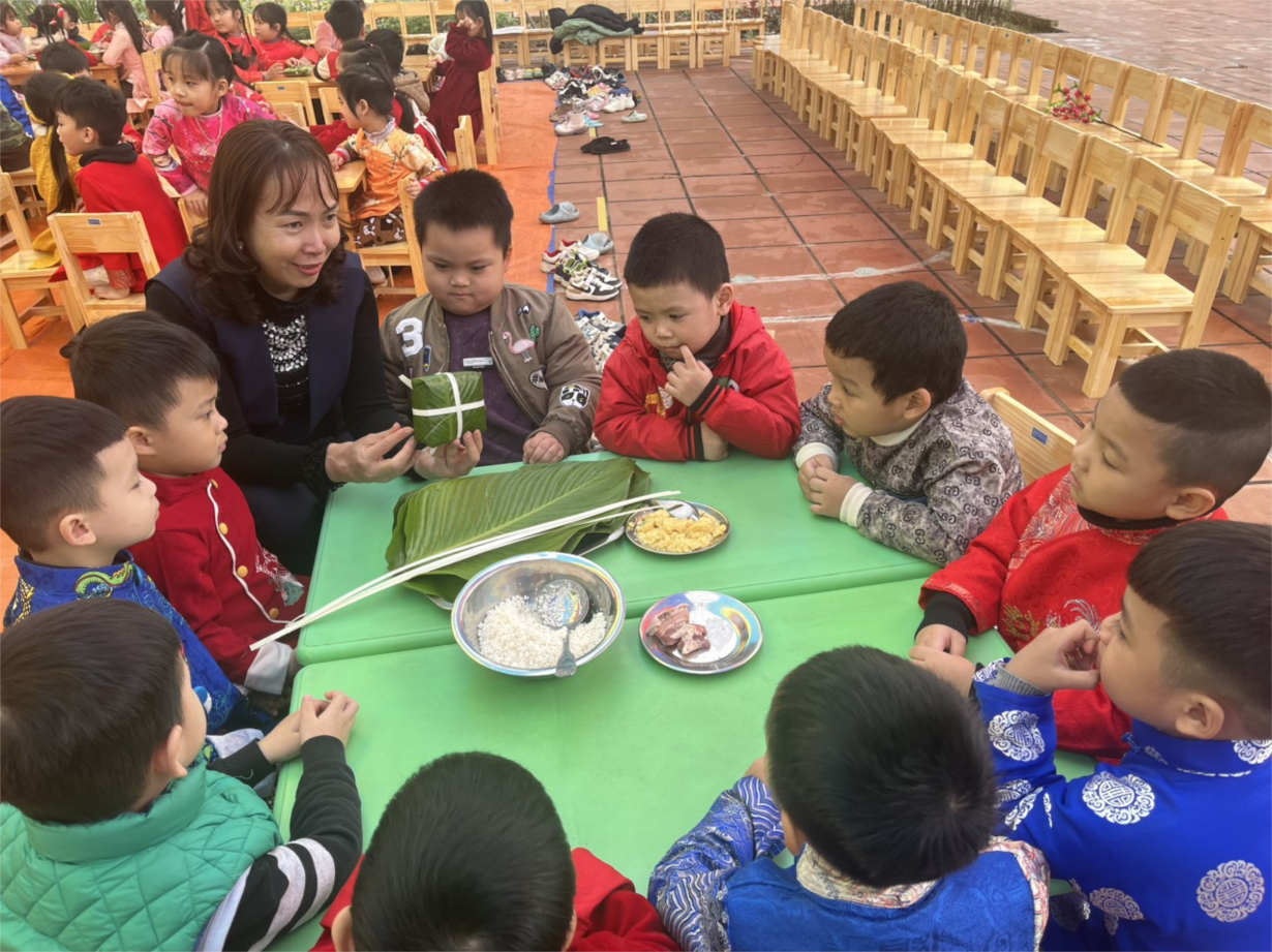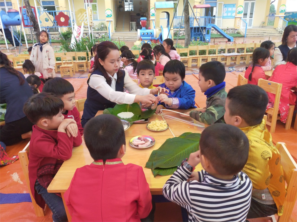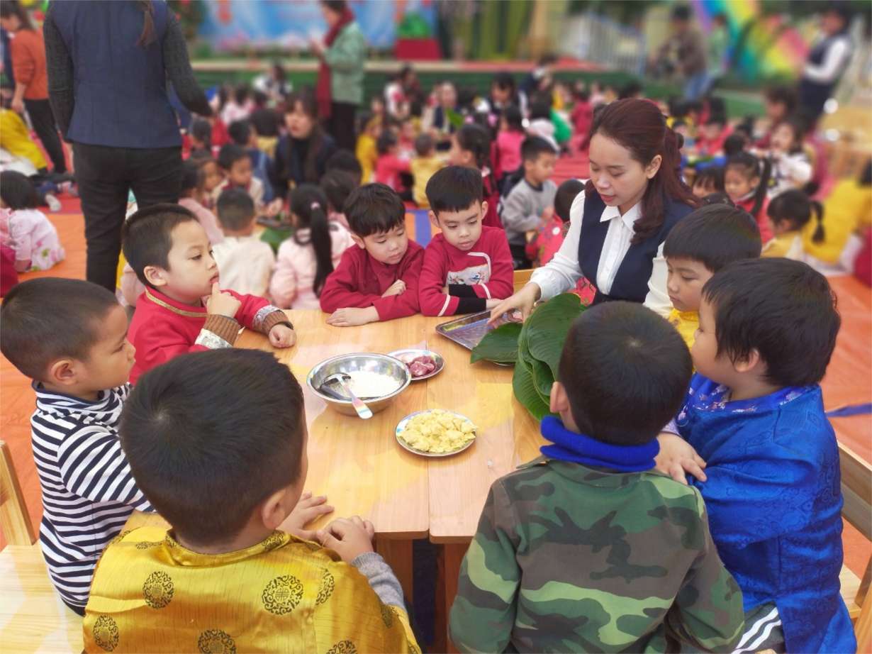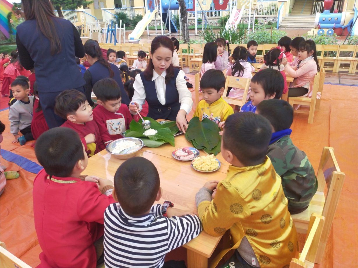 Các bé A1 tham gia gói bánh chưng
