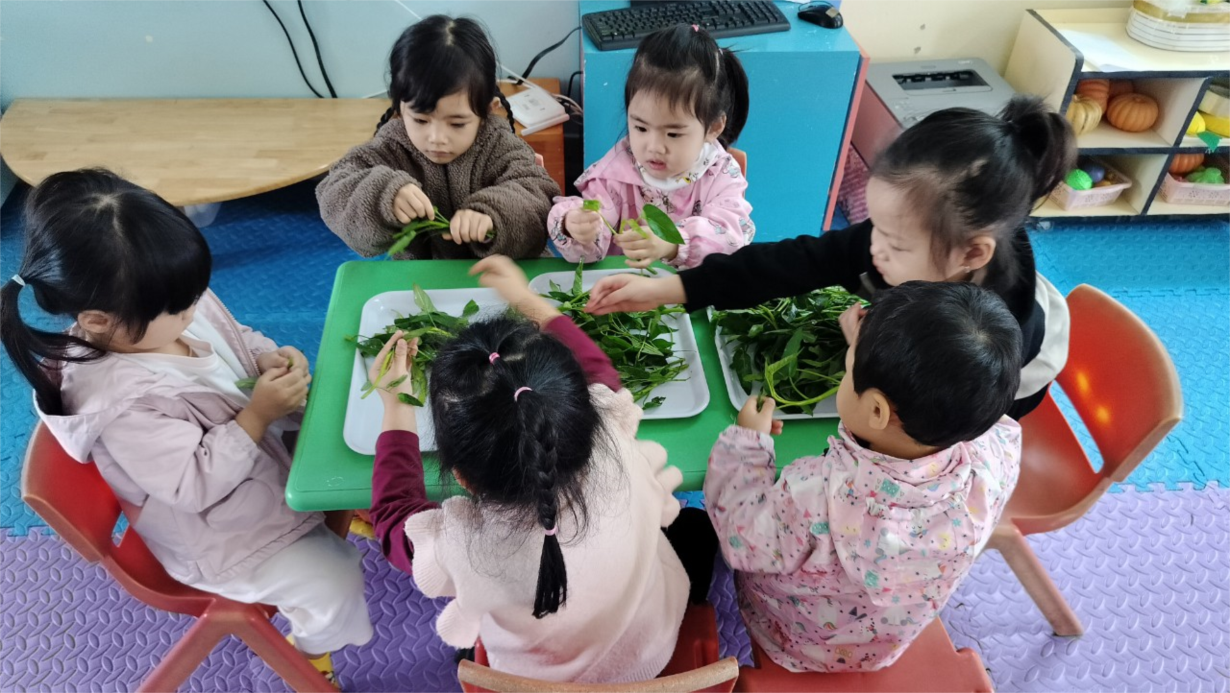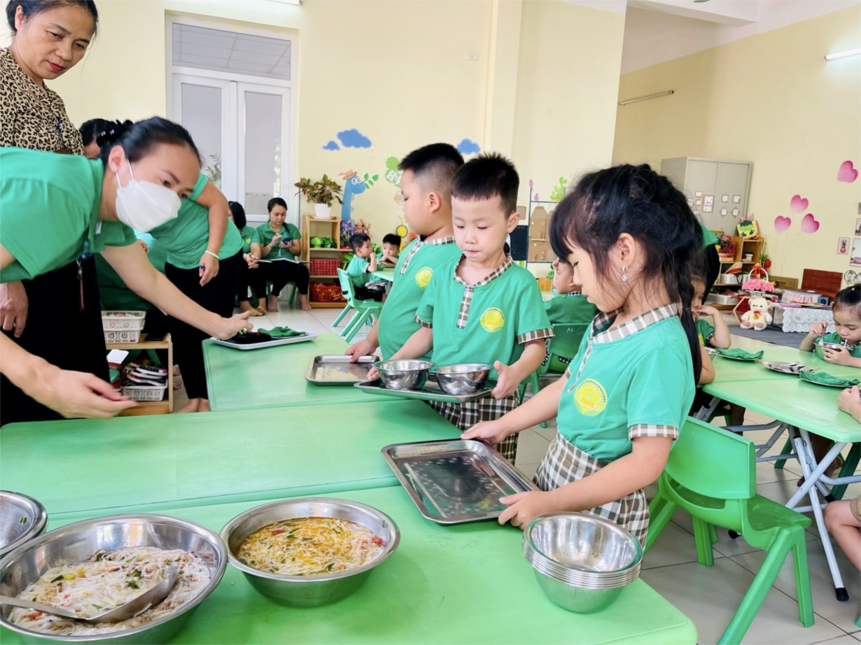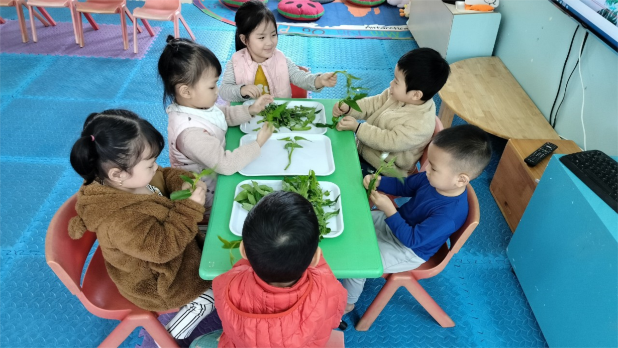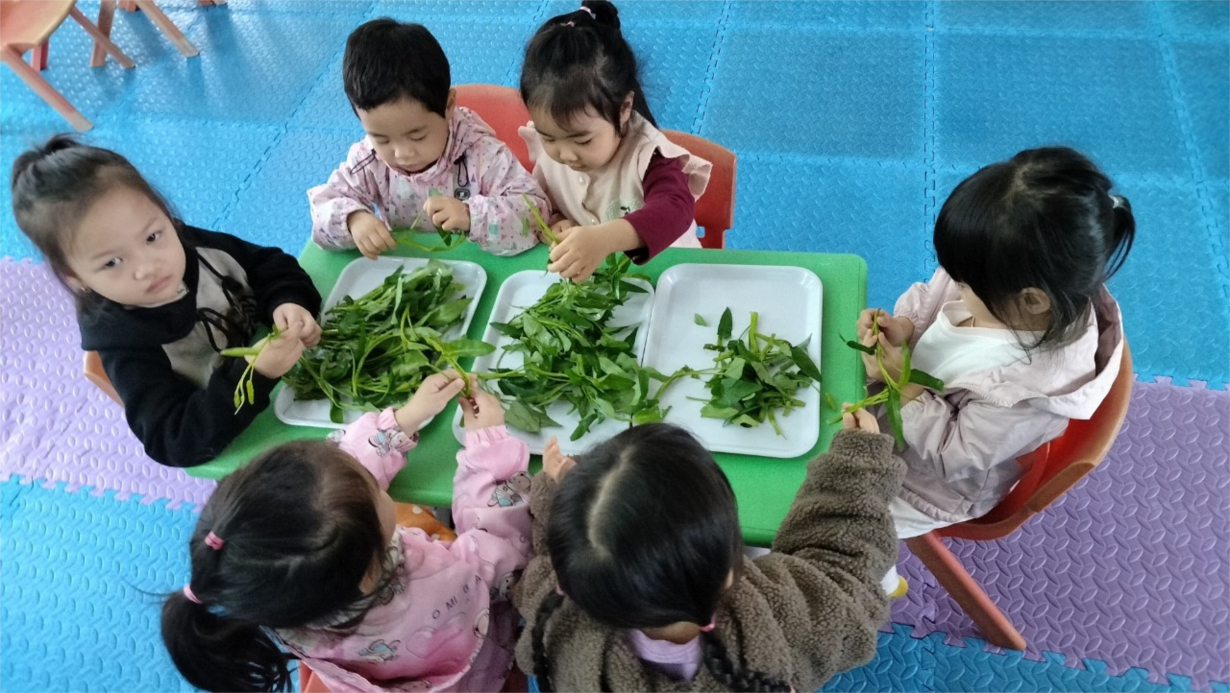 Các bé lớp C2 được trải nghiệm kỹ năng " Nhặt rau muống"