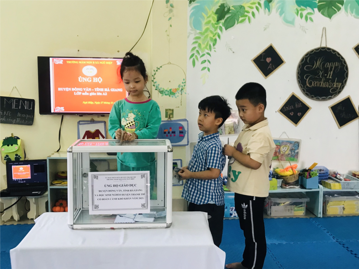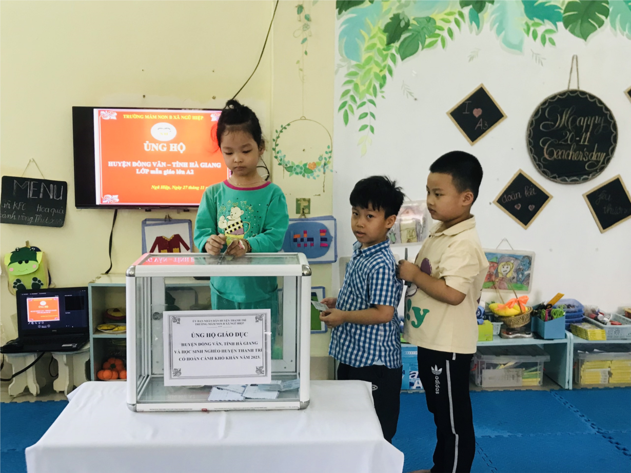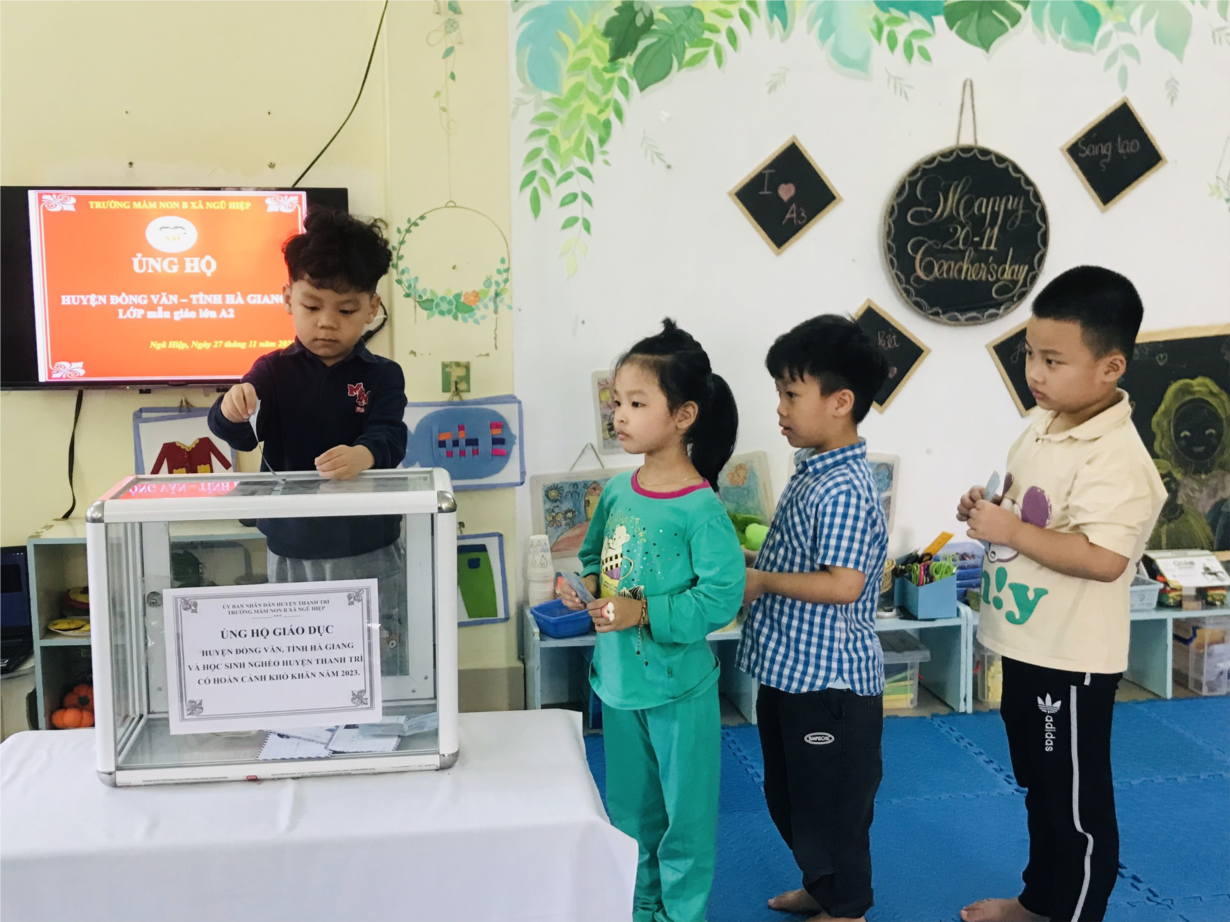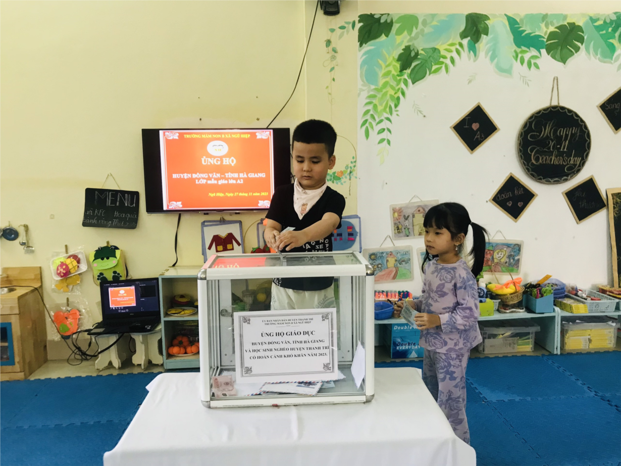 Các con lớp A2 ủng hộ nạn nhân vụ cháy ở Thanh Xuân