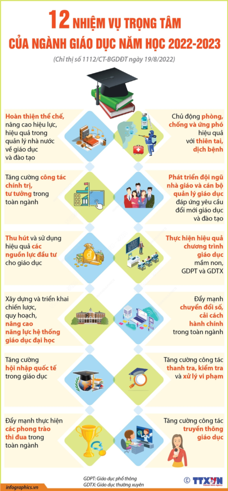 12 NHIỆM VỤ TRỌNG TÂM CỦA NGÀNH GIÁO DỤC NĂM HỌC 2022-2023