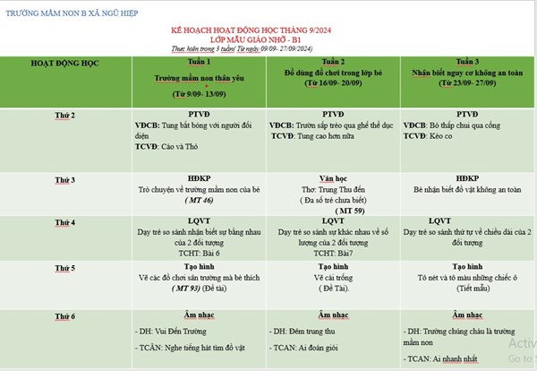 • Kế hoạch hoạt động nuôi dưỡng, chăm sóc giáo dục