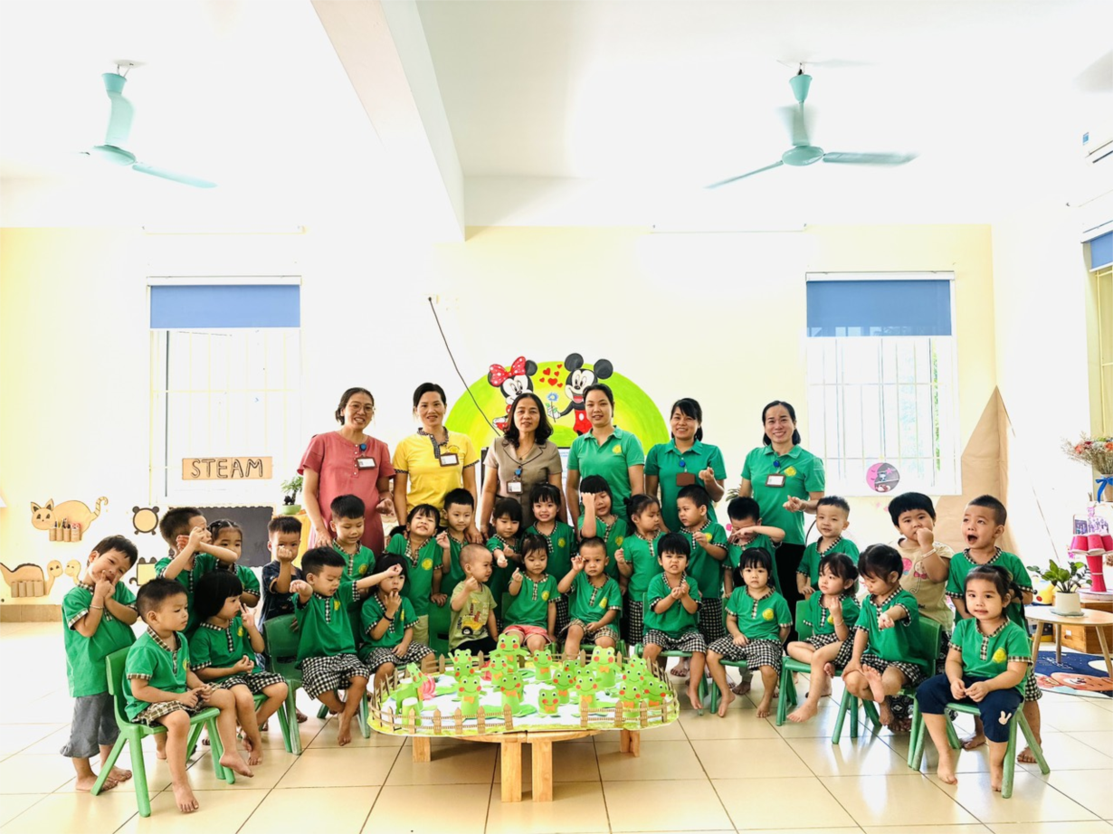 Hưởng ứng hội thi hội giảng chào mừng 20/11 năm học 2023-2024. Cô giáo Đặng Thị Huyền Trang cùng các bạn nhỏ lớp mẫu giáo bé C3 đã cùng nhau tham gia hoạt động tạo hình “ Tạo hình con ếch từ cốc giấy”. Đúng vậy hoạt động tạo hình là phương tiện giáo dục toàn diện rất tích cực không thể thiếu được trong chương trình giáo dục trẻ để trẻ thỏa sức sáng tạo những ý tưởng của mình. Và các bạn nhỏ lớp C3 đã sử dụng đôi bàn tay khéo léo để bóc băng dính dán các bộ phận của con ếch vào cốc giấy thành những con ếch đáng yêu và ngộ nghĩnh.