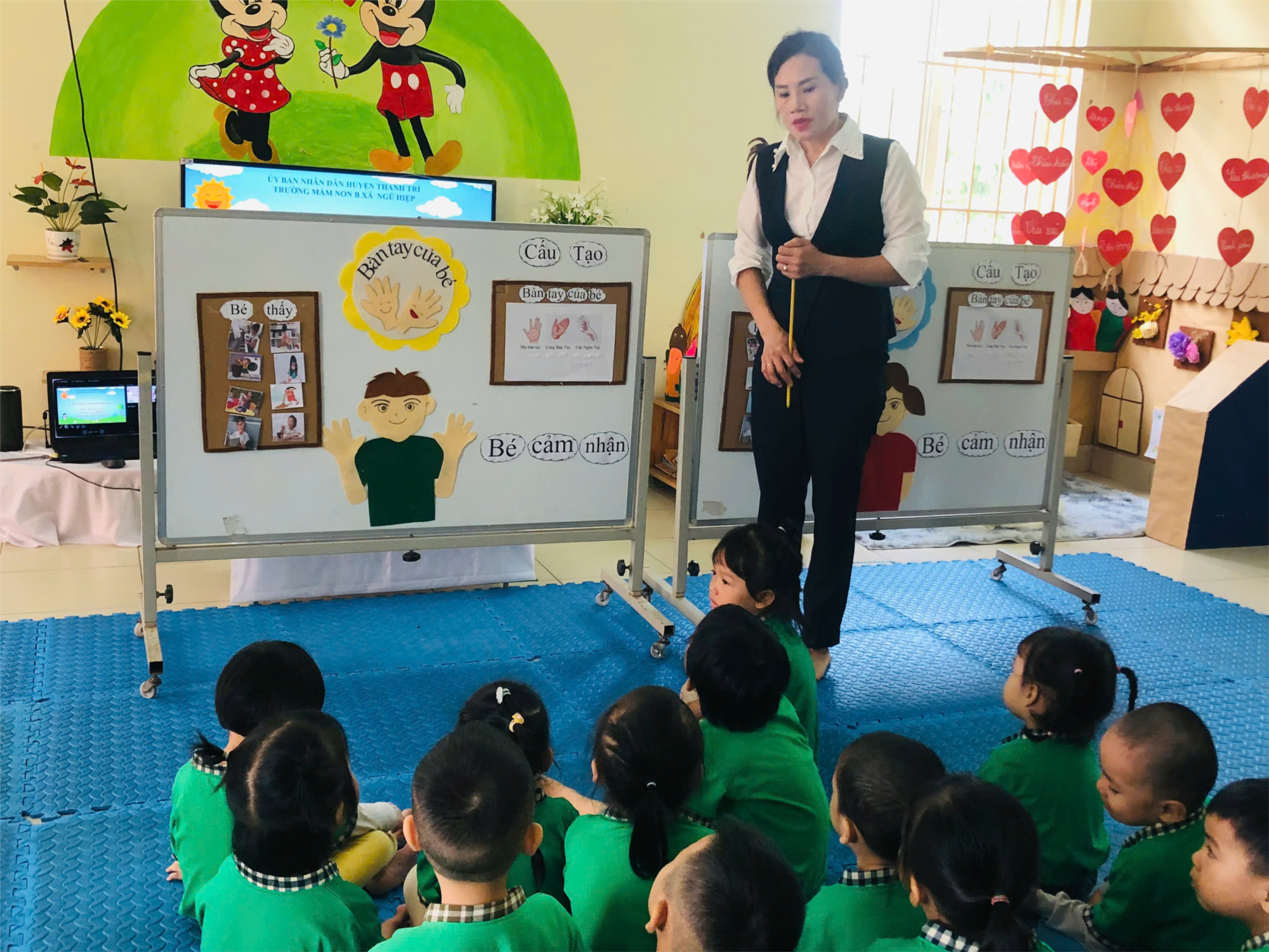 Để giúp các bé hiểu hơn về đôi bàn tay của mình, lớp mẫu giáo béC3 trường Mầm non Ngũ Hiệp đã tổ chức hoạt động trải nghiệm “Khám phá đôi bàn tay”. Tham gia vào hoạt động trải nghiệm này, giúp trẻ rèn kĩ năng khéo léo, cảm nhận được sự thô ráp hay nhẵn mịn, cứng hay mềm của các vật xung quanh.