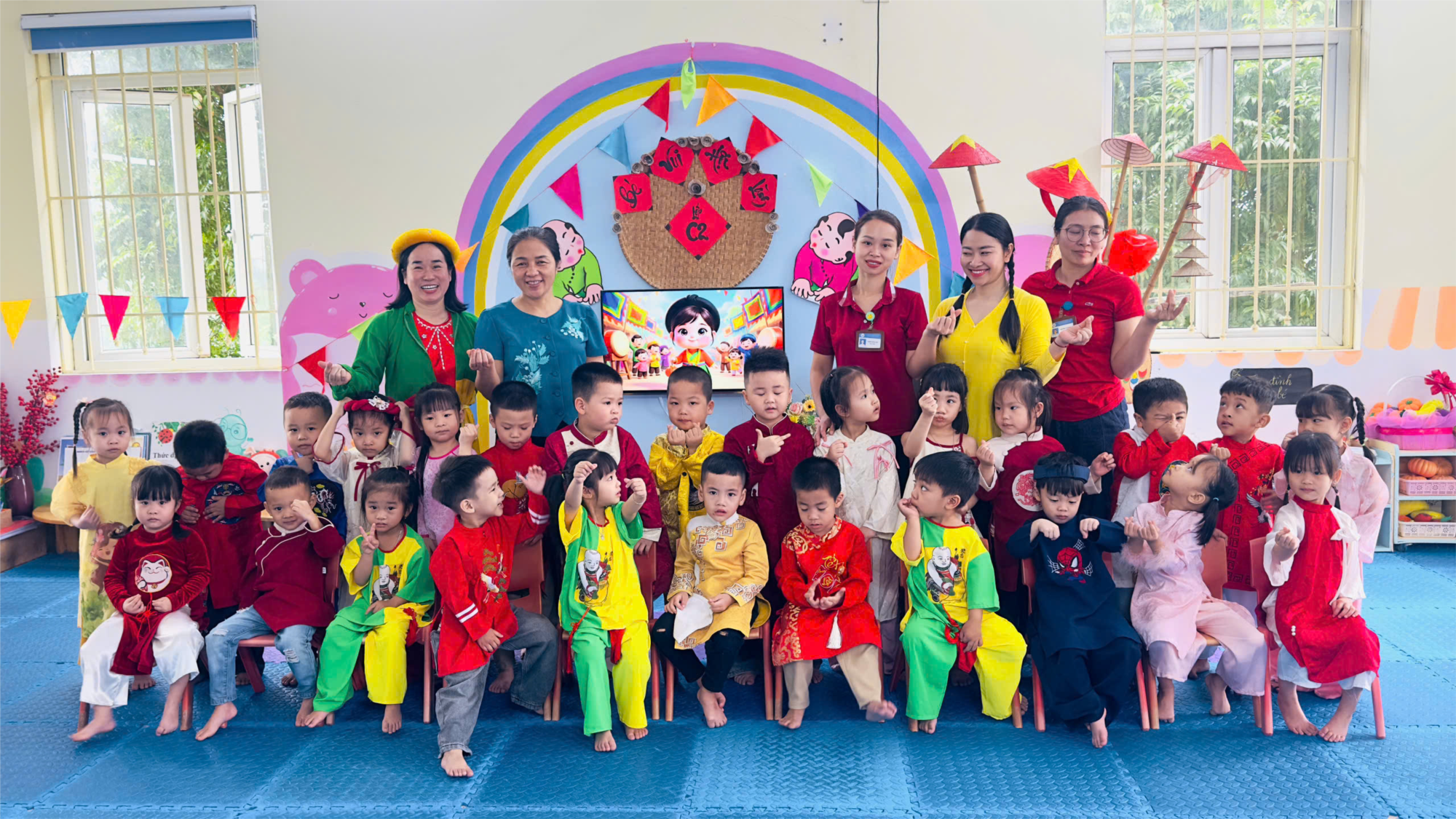 Tiết học Âm nhạc thi Hội giảng của các bé lớp MGB C2 diễn ra rất sôi nổi và hào hứng. Các con đã biết vận động vỗ tay theo phách bài “Bắc kim thang” một cách nhịp nhàng, thể hiện sự cảm nhận âm nhạc tốt. Bên cạnh đó, hoạt động nghe hát “Trống cơm” giúp các bé thêm yêu thích làn điệu dân gian. Đặc biệt, giáo viên đã ứng dụng AI để hỗ trợ trình chiếu hình ảnh, âm thanh sinh động, giúp tiết học trở nên hấp dẫn và hiệu quả hơn.