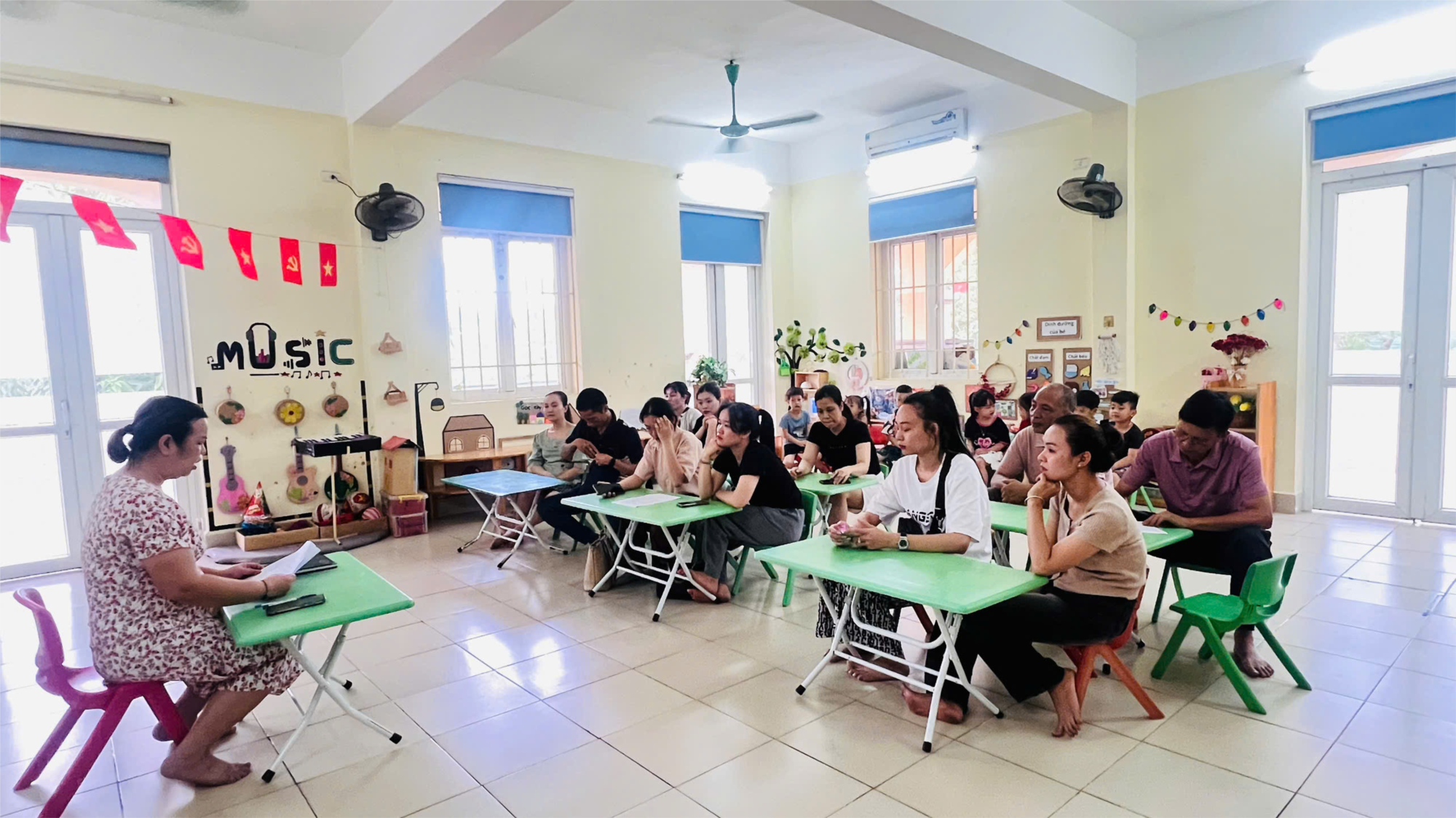 Họp phụ huynh cuối năm học là một hoạt động quan trọng nhằm tổng kết quá trình học tập, rèn luyện của học sinh trong suốt năm học, đồng thời tạo điều kiện để nhà trường và giáo viên chủ nhiệm trao đổi trực tiếp với cha mẹ học sinh về kết quả, phương hướng phát triển, cũng như các nội dung cần phối hợp trong thời gian tới. Giúp tạo không khí cởi mở, gắn kết giữa nhà trường và gia đình. Dưới đây là hình ảnh diễn ra cuộc họp phụ huynh cuối năm của các bạn nhỏ lớp MGL A4