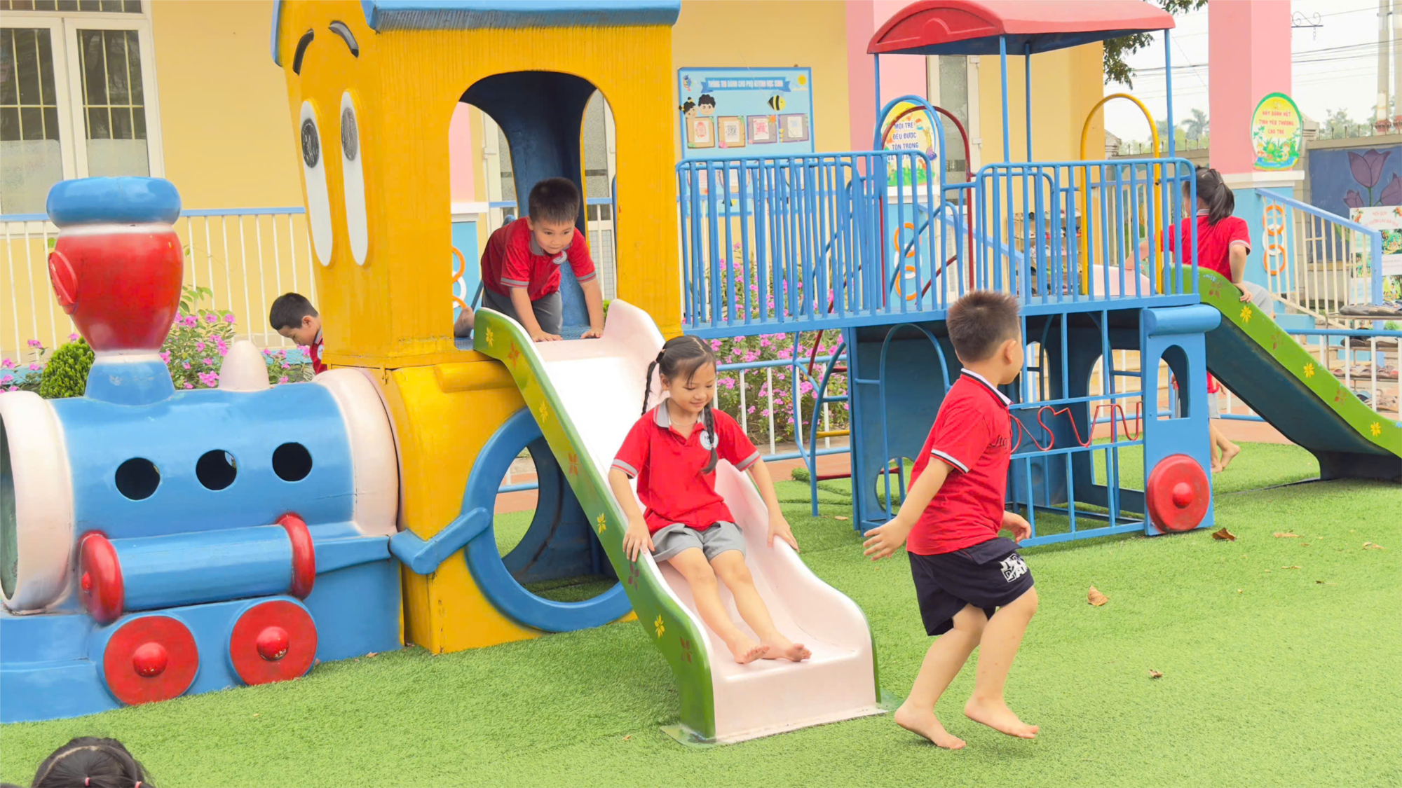 Nhà trường và các cô luôn chú trọng tạo môi trường an toàn, thân thiện để các con được vui chơi, khám phá và phát triển toàn diện mỗi ngày 💚
