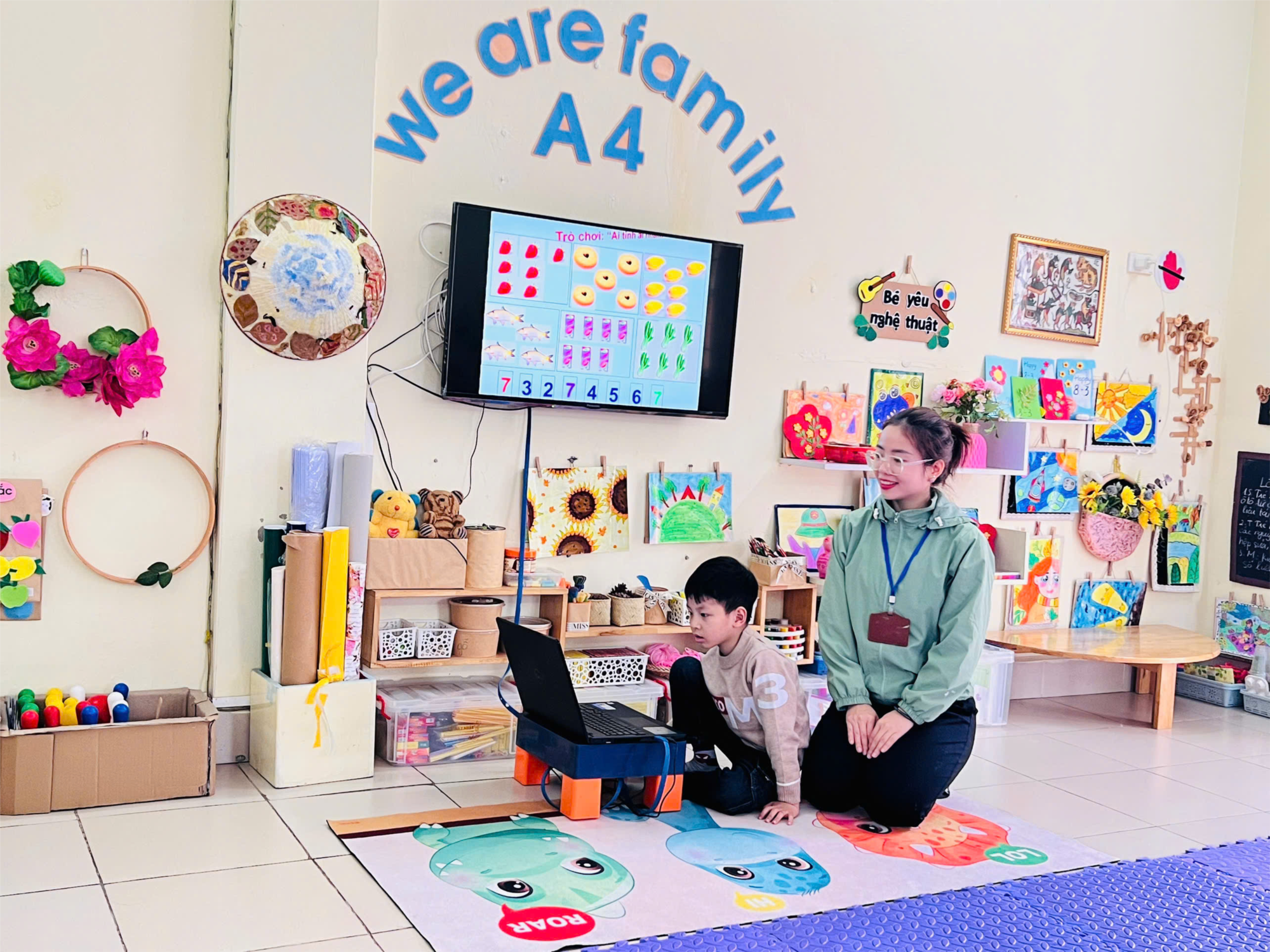Việc ứng dụng công nghệ thông tin trong dạy học mầm non tạo nên môi trường phát triển toàn diện cho trẻ. Trẻ được tiếp cận với thế giới công nghệ từ sớm, góp phần hình thành tư duy công nghệ, tạo dựng nguồn hành trang vững chắc cho tương lai. Dưới đây là một số hình ảnh các bạn nhỏ lớp A4 tham gia hoạt động học có sử dụng ứng dụng CNTT trong tiết dạy. Góp phần giúp các con hứng thú hơn trong hoạt động.