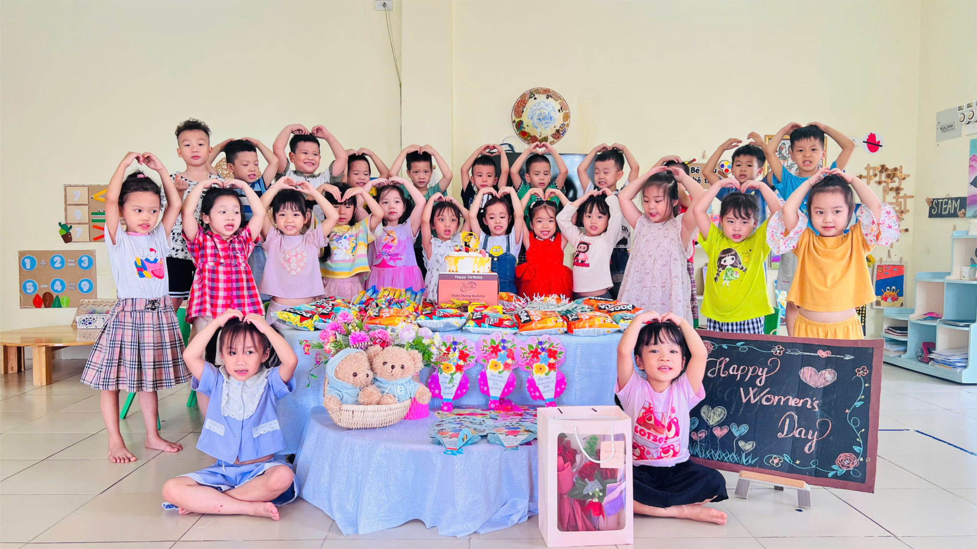 Nhân dịp kỷ niệm ngày 20/10, lớp mẫu giáo lớn A4 đã tham gia có những hoạt động ý nghĩa để tỏ lòng biết ơn tới những người phụ nữ yêu thương. Các con đã tự tay trang trí những tấm thiệp đầy màu sắc, thật đẹp để gửi gắm tình yêu, lòng biết ơn và tình cảm dành tặng bà, tặng mẹ của mình và được liên hoan chào mừng ngày 20/10.