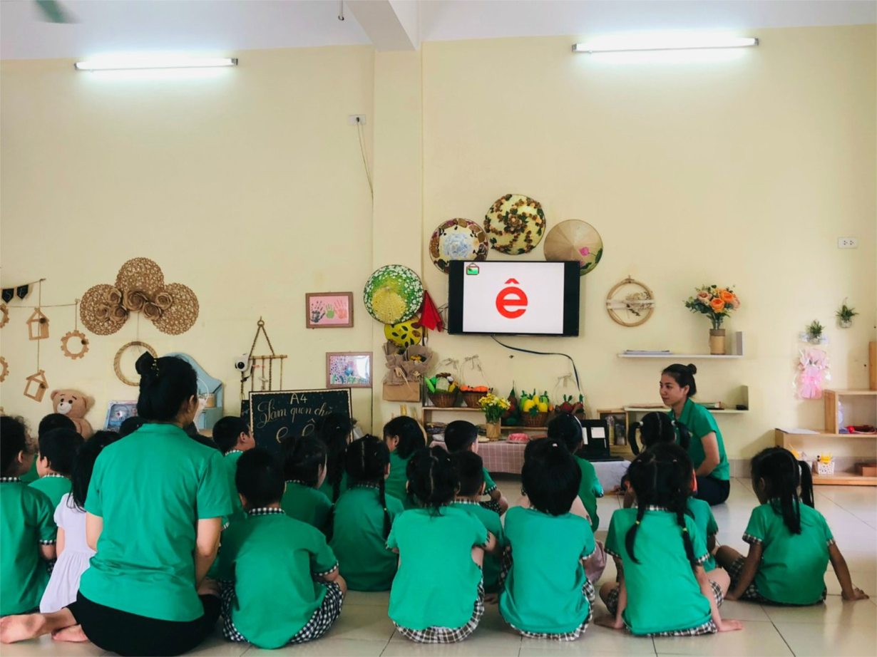 Môn học “làm quen chữ cái” ở trẻ 5 - 6 tuổi là môn học giúp trẻ hình thành, phát triển năng lực và thái độ cần thiết cho việc học tiếng việt lớp 1. Song việc dạy trẻ làm quen với chữ cái cần phải thể hiện phương pháp đặc trưng của giáo dục mầm non. Ngày 23/10 vừa qua cô giáo Phạm Thị Hải Yến đã lên tiết hội giảng "làm quen chữ cái, e,ê". Giờ học rất vui và bổ ích đã giúp các con làm quen chữ cái qua hình thức đổi mới linh động, sáng tạo.