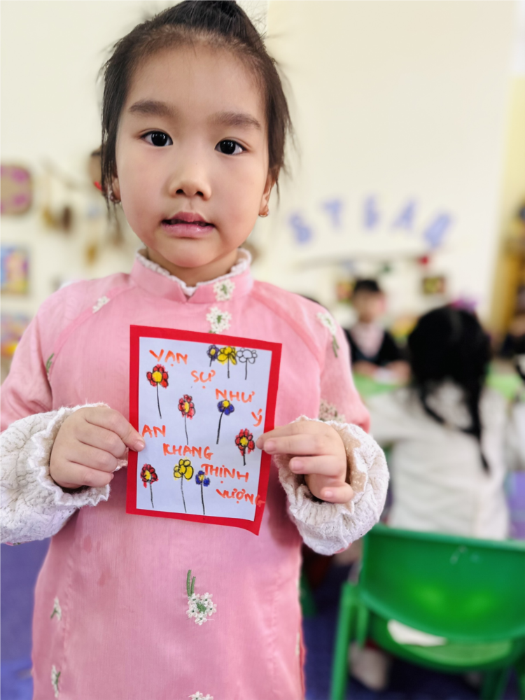 🌻🌻Tết Nguyên Đán Ất Tỵ 2025 đang đến gần, không khí rộn ràng ngập tràn khắp mọi nơi, và tại lớp Mẫu giáo nhỡ B2, các bé cũng háo hức tham gia hoạt động trang trí câu đối Tết. Những bàn tay nhỏ nhắn thoăn thoắt tô màu, tô vẽ hoa văn và cẩn thận trang trí trên câu đối đỏ. Với sự hướng dẫn của cô giáo, các bé không chỉ được thỏa sức sáng tạo mà còn hiểu thêm về ý nghĩa truyền thống của câu đối trong ngày Tết. Những câu đối rực rỡ sắc màu không chỉ làm đẹp không gian mà còn mang theo ước mong về một năm mới an lành, hạnh phúc. Đây thực sự là một hoạt động ý nghĩa, giúp trẻ em thêm yêu văn hóa dân tộc từ những điều giản dị nhất
