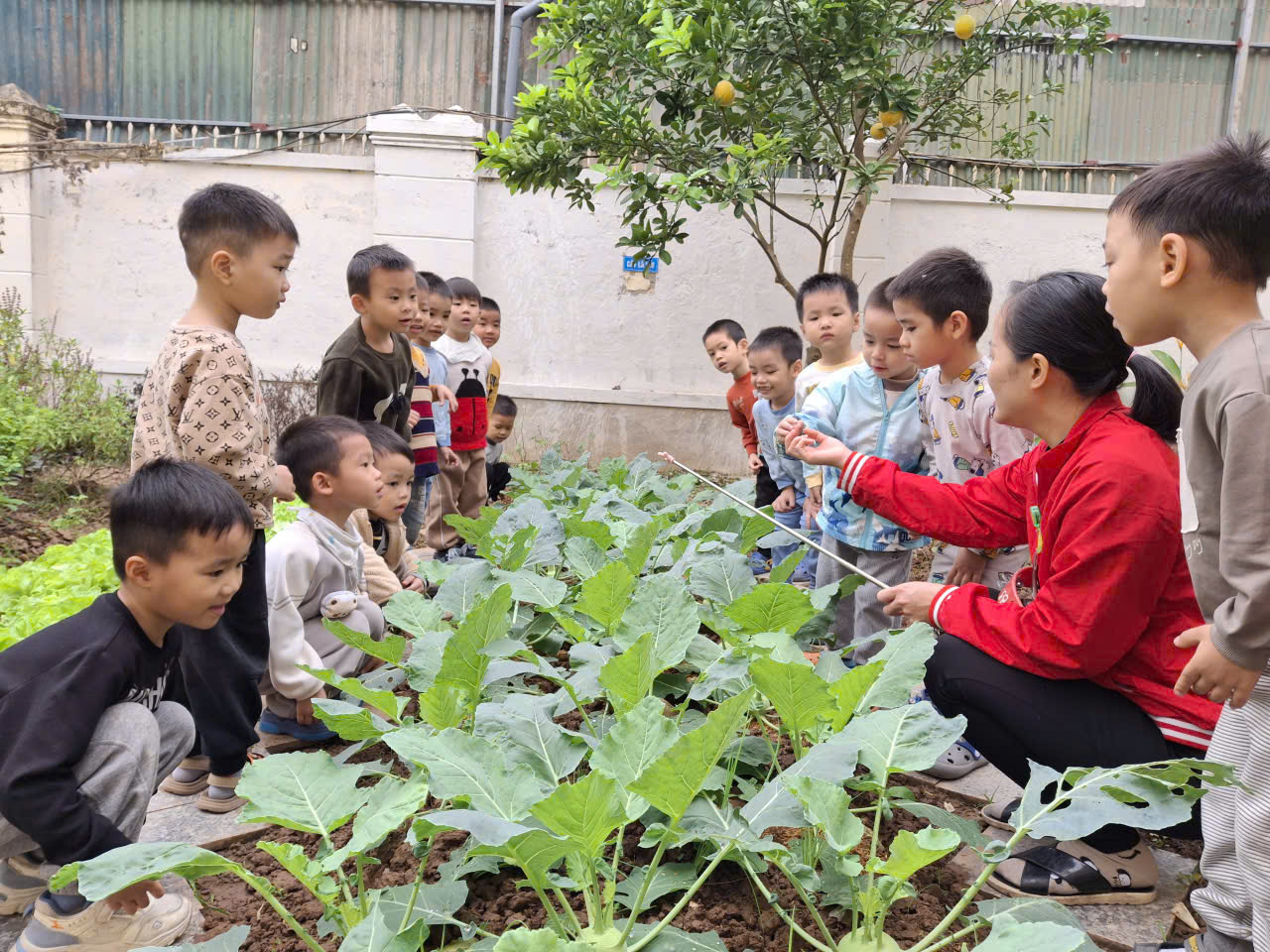 Hôm nay 🌱 lớp mẫu giáo nhỡ B2 rất vui được tham quan vườn rau của nhà trường 🌿.