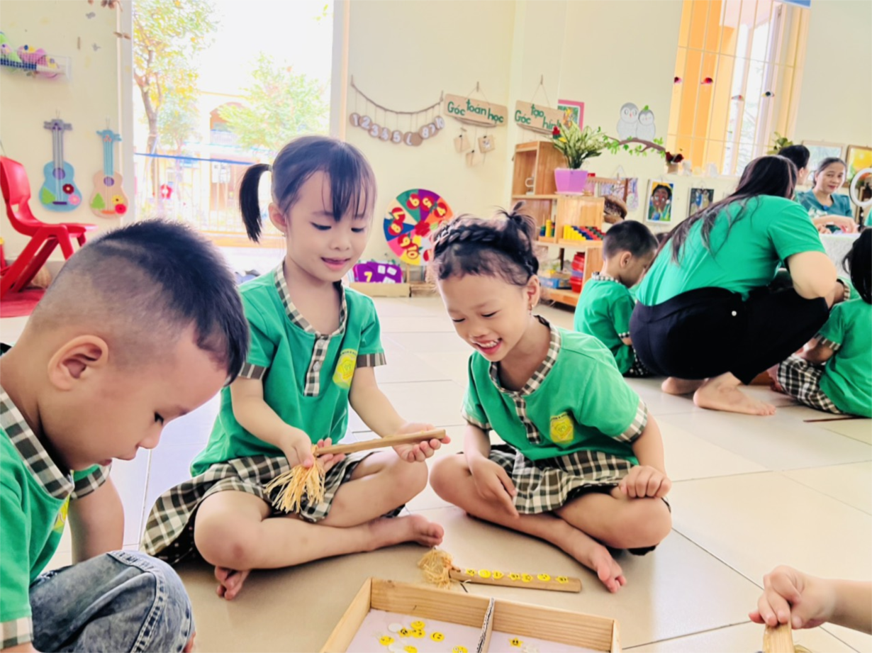 Chào tuần mới với hoạt động làm quen với Toán qua đề tài: Sắp xếp theo quy tắc 3 đối tượng của lớp mẫu giáo nhỡ B3 các con được trải nghiệm gõ đệm cho bản nhạc qua hình thức bộ gõ cơ thể: Vỗ đùi, vỗ vai, vỗ tay để gõ đệm cho bản nhạc theo quy tắc sắp xếp 3 đối tượng, một đề tài mới khiến các con có trải nghiệm rất hào hứng.