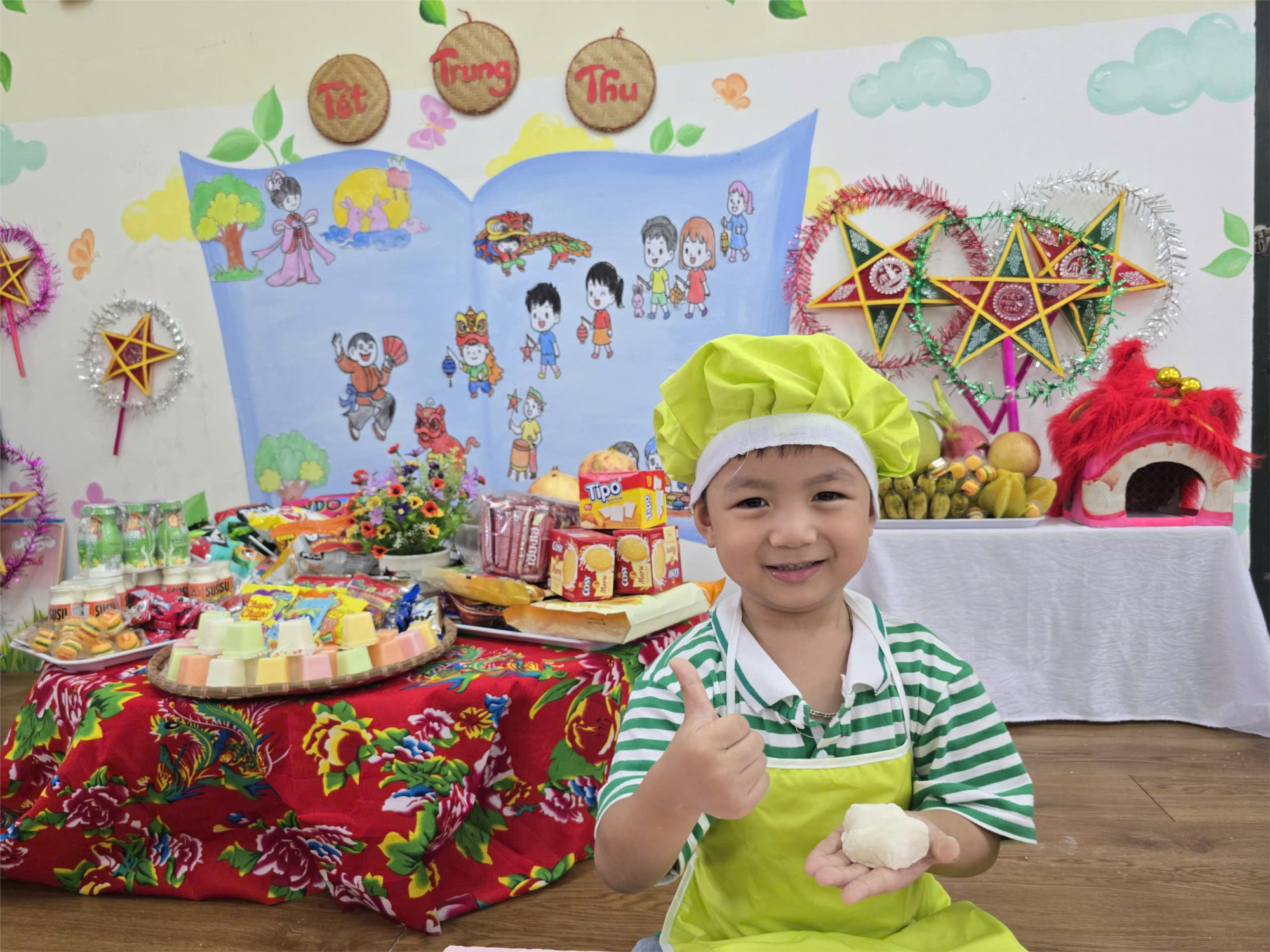 Hòa trong không khí rộn ràng của ngày Tết Trung thu, các bé lớp MGN B1 đã có một buổi trải nghiệm thật vui và ý nghĩa. Các bé được tham gia trải nghiệm các hoạt động trong ngày Tết Trung Thu con được tự tay nặn bánh trung thu, xem múa lân, xem xiếc. Các bé cùng nhau rước đèn quanh lớp, hát vang những bài ca Trung thu quen thuộc và phá cỗ vui tươi bên mâm ngũ quả rực rỡ.
