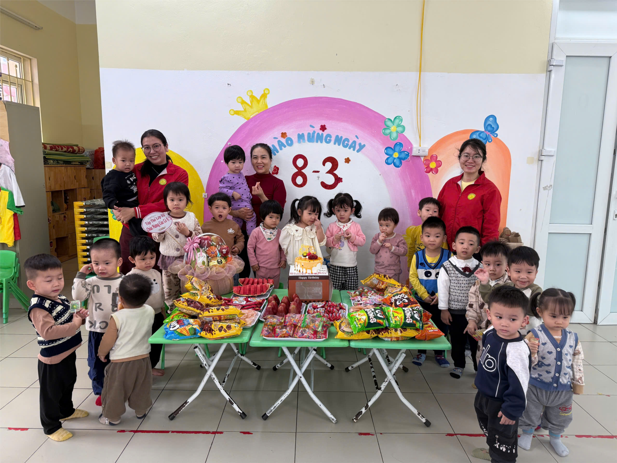 Nhân dịp ngày Quốc tế Phụ nữ 8/3, các bạn nhỏ lớp Nhà trẻ D2 đã có một giờ hoạt động tạo hình thật ý nghĩa với bài “Trang trí bưu thiếp chúc mừng 8/3”. Dưới sự hướng dẫn của cô, các bé được tự tay lựa chọn màu sắc, dán hình và trang trí những tấm thiệp xinh xắn gửi tặng bà, tặng mẹ.