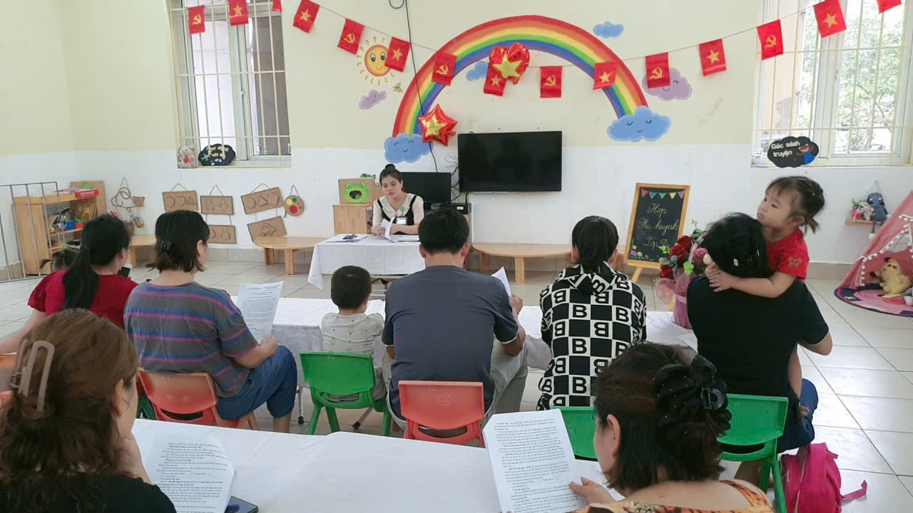 Tại buổi họp, giáo viên chủ nhiệm đã chia sẻ khái quát về tình hình lớp học, giới thiệu chương trình chăm sóc – giáo dục trẻ, đồng thời lắng nghe những ý kiến đóng góp quý báu từ phụ huynh. Không khí diễn ra sôi nổi, thân mật, thể hiện sự đồng hành, gắn bó giữa gia đình và nhà trường.