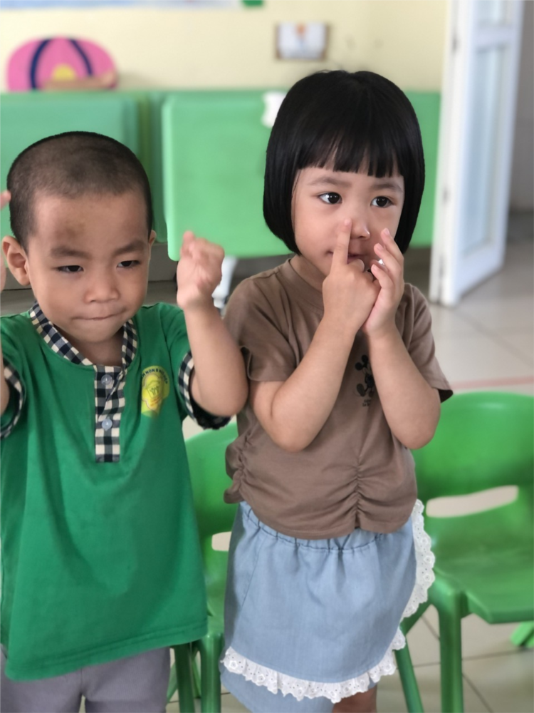 Sau đây là một số hình ảnh các bạn nhỏ lớp nhà trẻ D2 học hát bài "Cái mũi":