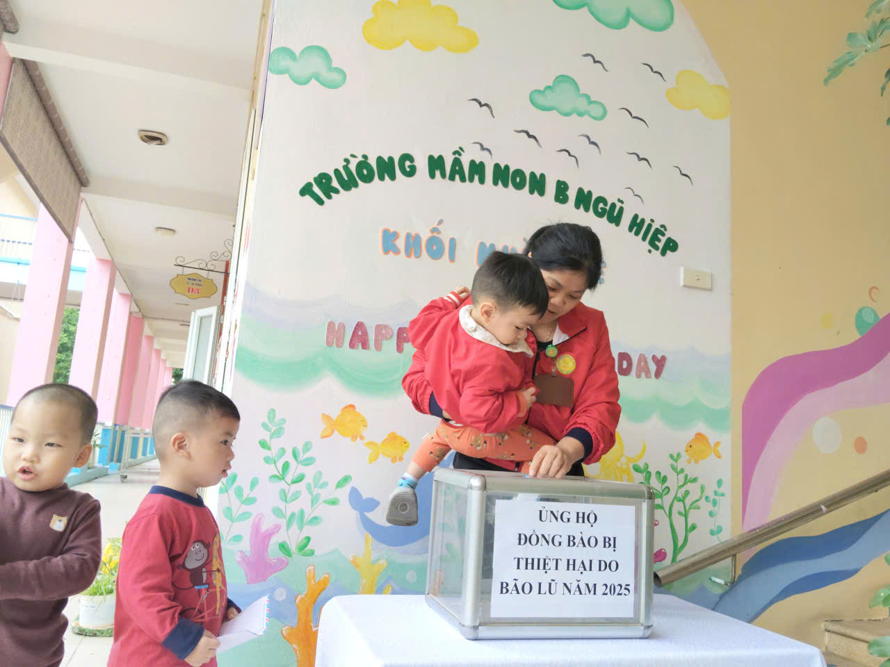 Tập thể giáo viên và các con lớp nhà trẻ D3 xin gửi lời tri ân sâu sắc đến quý phụ huynh đã chung tay ủng hộ đồng bào vùng bão lũ trong đợt quyên góp vừa qua. Những món quà, sự sẻ chia và tấm lòng nhân ái của quý phụ huynh không chỉ hỗ trợ thiết thực cho những hoàn cảnh khó khăn, mà còn là bài học ý nghĩa giúp các con hiểu hơn về tình yêu thương và tinh thần “lá lành đùm lá rách”.