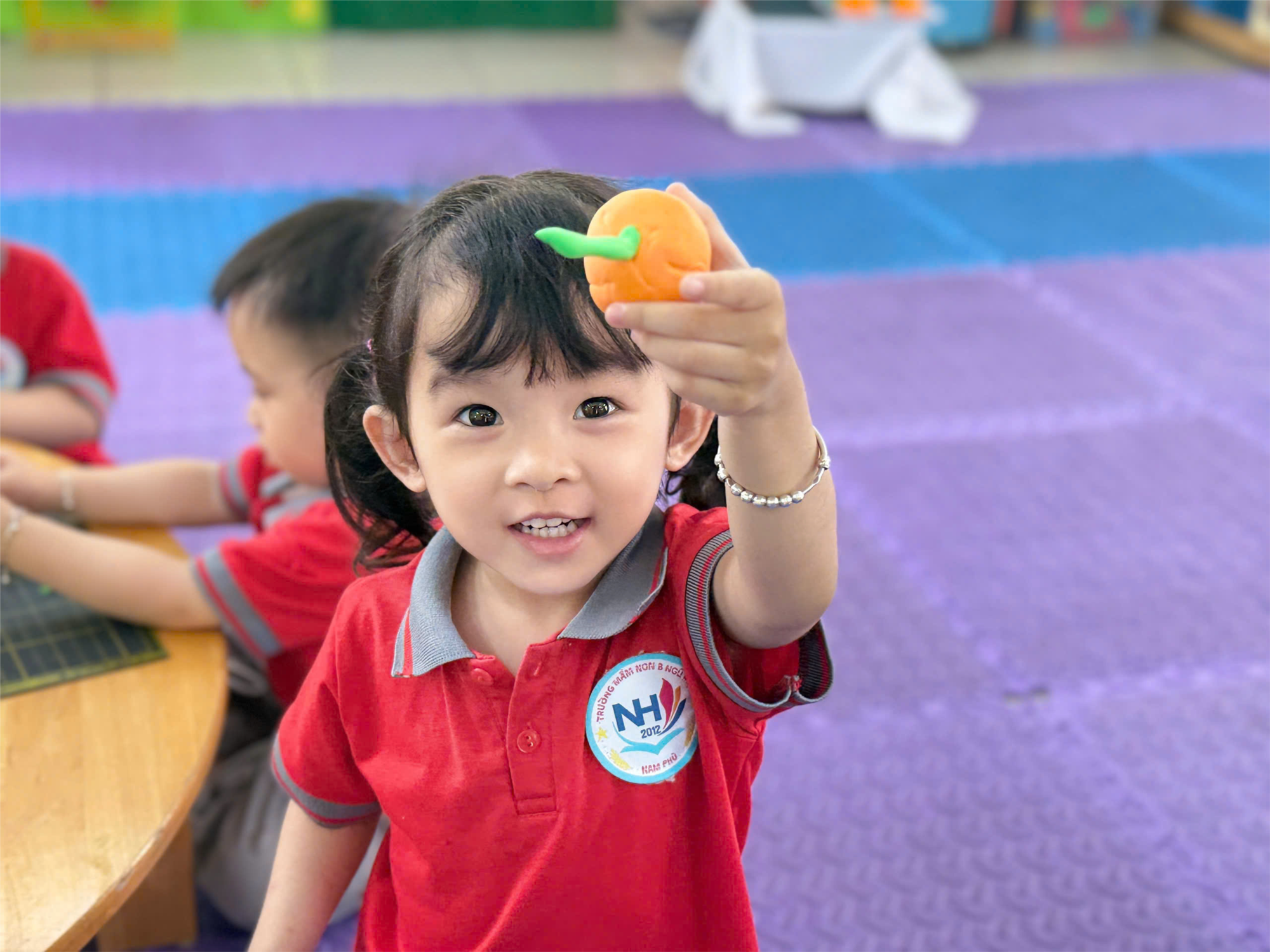 🎵 Kết thúc tiết học, cô và các bé cùng nhau hát vang bài vè “Bé nặn cam xinh”, tạo nên không khí vui tươi, nhẹ nhàng: