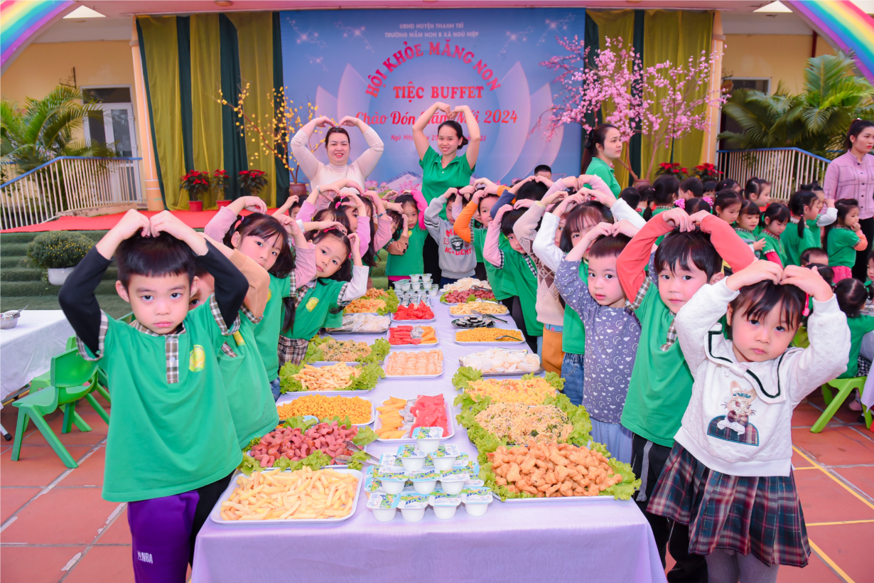 Hoà chung trong không khí tưng bừng chào đón Năm 2024. Hôm nay đúng 15h ngày 29 tháng 12 năm 2023 Trường mầm non B Ngũ Hiệp tổ chức cho các con liên hoan tiệc buffet tại trường.