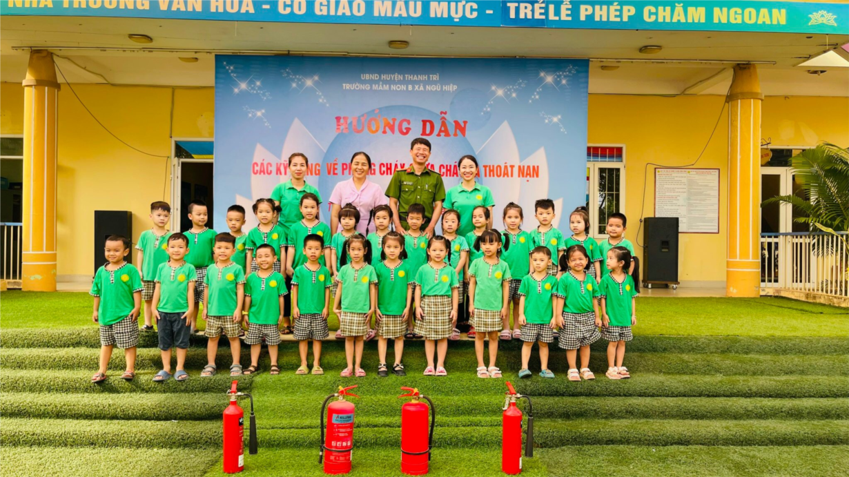 Trường mầm non B xã Ngũ Hiệp tổ chức tuyên truyền, hướng dẫn công tác PCCC và kỹ năng thoát hiểm cho cán bộ, giáo viên và học sinh .
