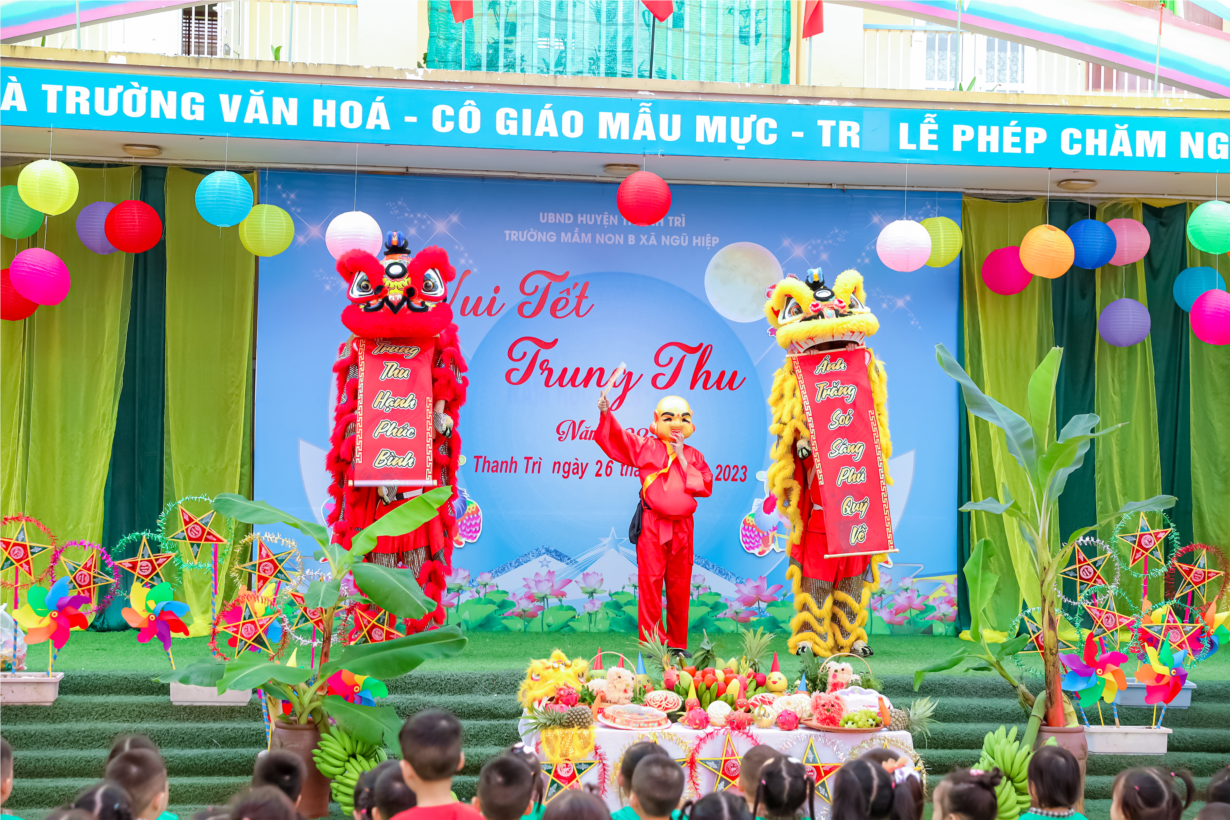 Hòa chung với không khí vui tươi, rộn ràng trong tiếng trống múa lân cùng với sắc màu rực rỡ của đèn lồng, sáng ngày 26 tháng 9 năm 2023 (tức ngày 12 tháng 8 âm lịch) Trường Mầm non B xã Ngũ Hiệp hân hoan tổ chức chương trình “Vui tết Trung Thu” năm 2023.