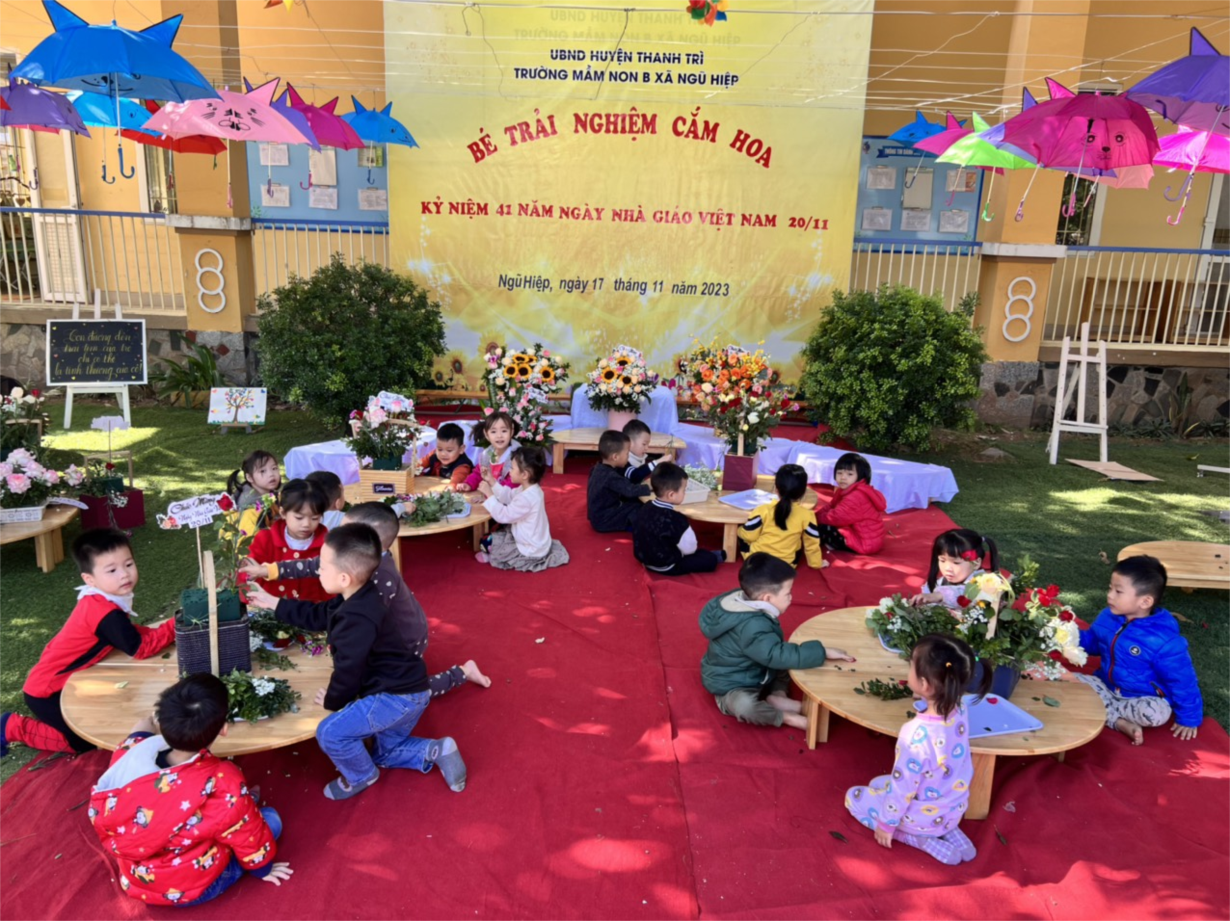 Ngày 20/11 là ngày Nhà Giáo Việt Nam một ngày vô cùng ý nghĩa dành để tôn vinh thầy, cô giáo những người chèo đò âm thầm và tận tụy. Vào ngày 17/11 Trường Mầm non B xã Ngũ Hiệp tổ chức cho các bé hoạt động trải nghiệm cắm hoa tặng cô vô cùng thú vị, vui vẻ và bổ ích. Hoạt động diễn ra sôi nổi với ý nghĩa gửi lời tri ân sâu sắc của các con giành tặng tới các cô. Và dưới đây là hình ảnh vô cùng đáng yêu của các bé tham gia trải nghiệm cắm hoa.