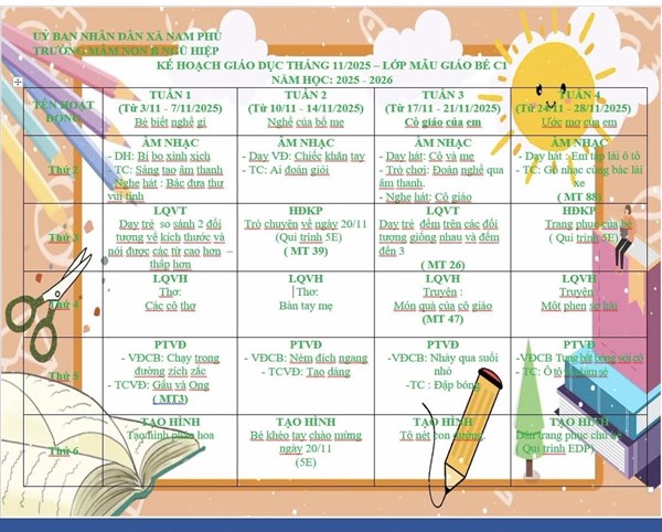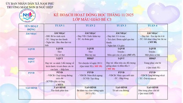 • Kế hoạch hoạt động nuôi dưỡng, chăm sóc giáo dục