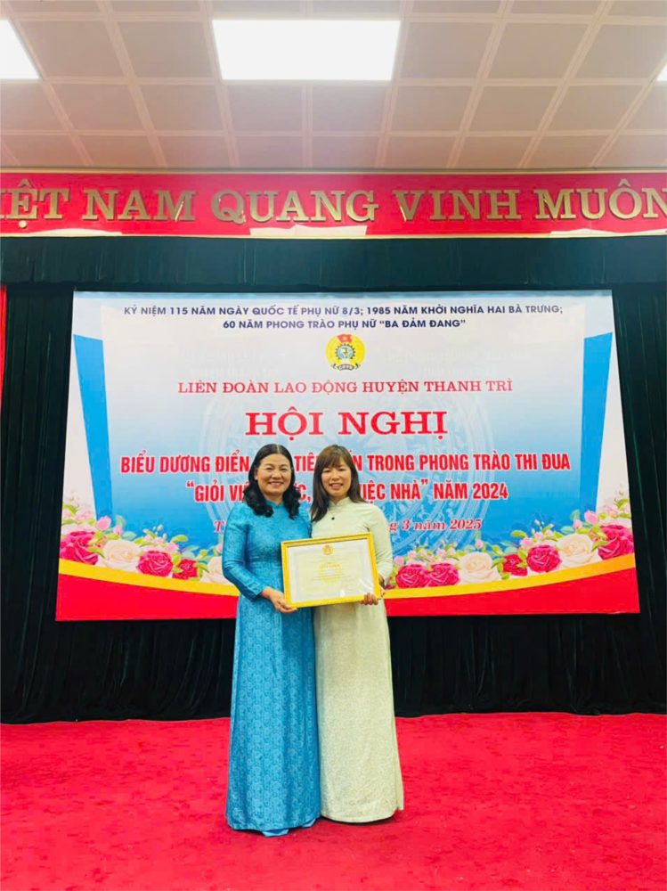 Cô giáo Phạm Thị Huyền Trang, giáo viên Trường Mầm non B xã Ngũ Hiệp, là tấm gương tiêu biểu của người phụ nữ hiện đại—giỏi chuyên môn, tận tâm với nghề và chu toàn trong gia đình. Với lòng yêu nghề, mến trẻ, cô không ngừng đổi mới phương pháp giảng dạy, mang đến cho các em nhỏ những bài học bổ ích và đầy yêu thương. Trong gia đình, cô là người vợ đảm, người mẹ hiền, luôn vun vén hạnh phúc. Danh hiệu "Giỏi việc nước, đảm việc nhà" là sự ghi nhận xứng đáng cho những cống hiến bền bỉ và tâm huyết của cô trong cả sự nghiệp và cuộc sống.