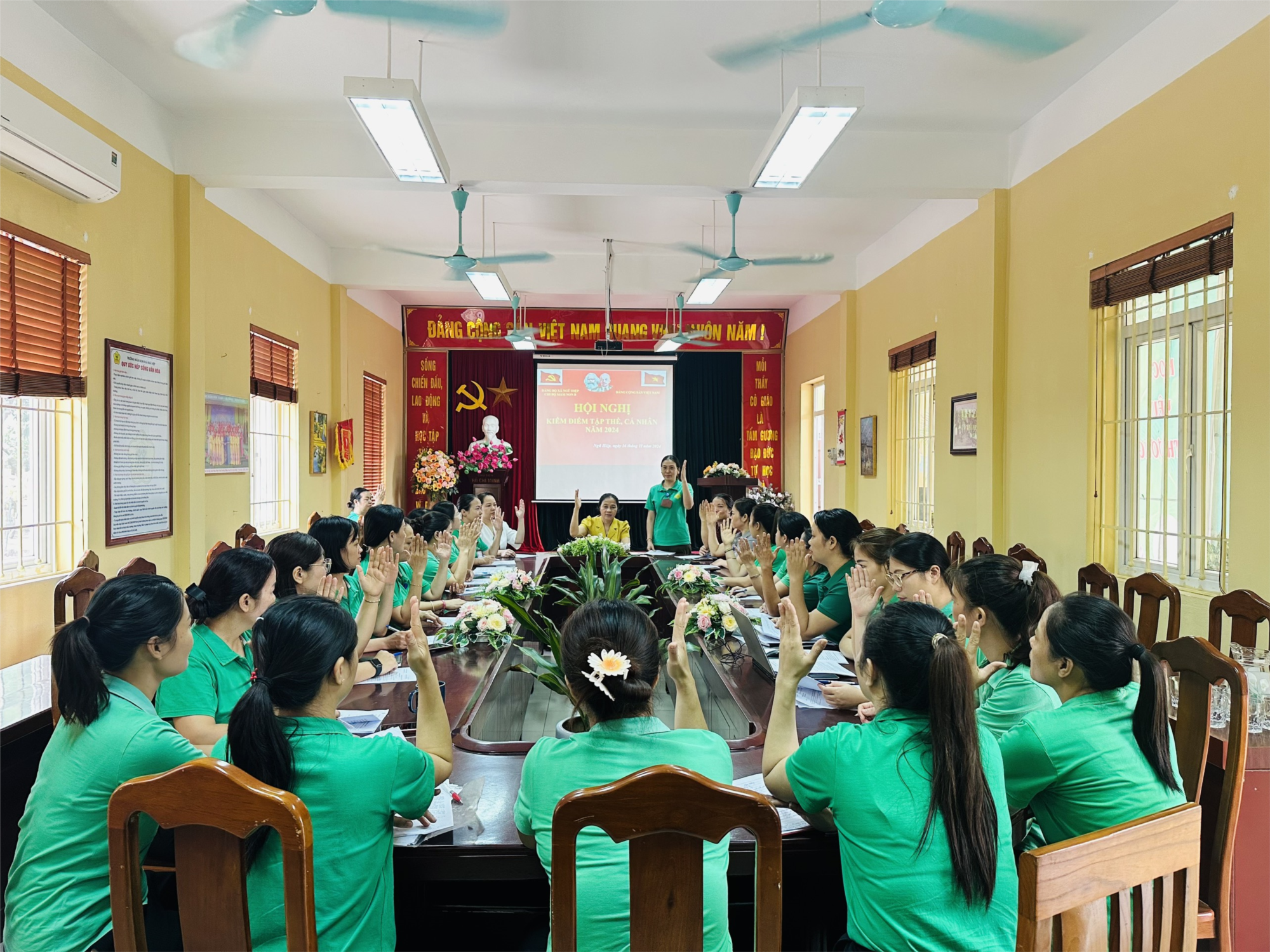 Thực hiện theo Kế hoạch số 45/KH-ĐU của Đảng ủy xã Ngũ Hiệp ngày 10 tháng 11 năm 2024 về kiểm điểm, đánh giá, xếp loại chất lượng đối với tổ chức đảng, đảng viên và tập thể, cá nhân cán bộ, lãnh đạo năm 2024. Chiều ngày 16/11/2024 Chi bộ trường mầm non B xã Ngũ Hiệp tổ chức đánh giá chất lượng đảng viên cuối năm nhằm đánh giá chất lượng hoạt động của chi bộ và đảng viên trong chi bộ trong năm 2024