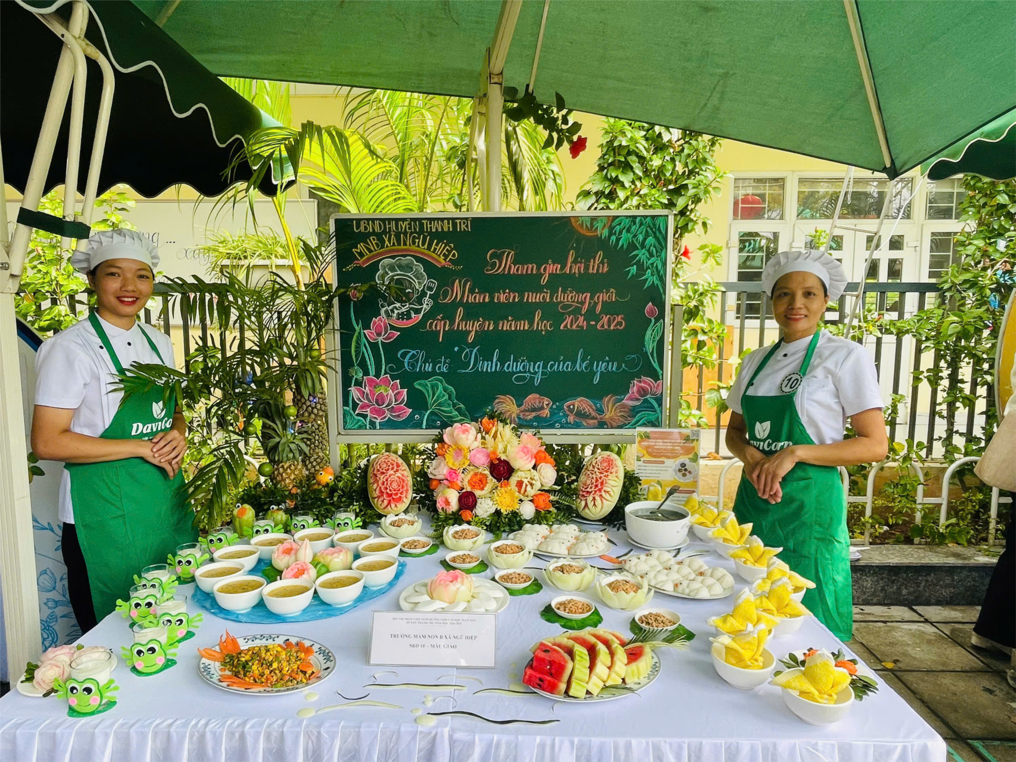 Với lòng yêu nghề, mến trẻ, tâm huyết, sáng tạo các đồng chí tổ nuôi dưỡng đã mang đến hội thi thực đơn một ngày của trẻ mẫu giáo. Thực đơn phong phú được tính khẩu phần cân đối tỷ lệ dinh dưỡng, đủ calo một ngày của trẻ ở trường. Với sự tỉ mỉ, trau chuốt trong từng món ăn các đồng chí nhân viên nuôi dưỡng trường mầm non B Ngũ Hiệp đã để lại ấn tượng cho Ban giám khảo, các bạn đồng nghiệp.