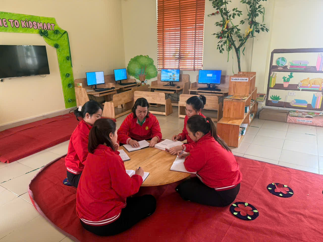 🌼 Sau đây là một số hình ảnh sinh hoạt chuyên một tại phòng thư viện trường Mầm Non B xã Ngũ Hiệp của các cô giáo khối lớn: