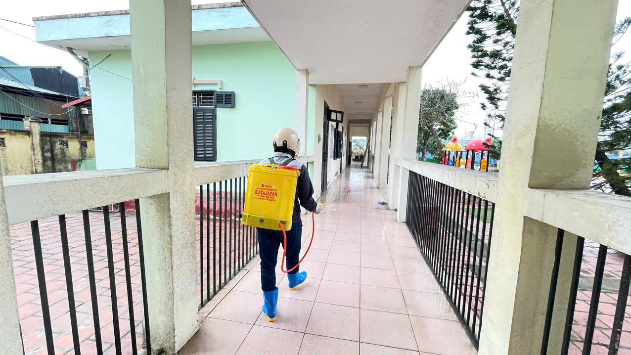 Căn cứ kế hoạch số 20/KH-YTHĐ-MNBNH ngày 28/2/2025 Kế hoạch phun muỗi- tổng vệ sinh môi trường trong trường học năm học 2024-2025. Ngày 02/3/2025 Nhà trường đã phun thuốc diệt muỗi toàn bộ khuôn viên nhà trường tại hai điểm trường, cả trong và ngoài lớp học, nhờ đó việc phòng bệnh Sốt xuất huyết cũng được nâng cao hiệu quả. Phun thuốc muỗi là biện pháp quan trọng trong phòng chống dịch sốt xuất huyết, giúp tiêu diệt muỗi truyền bệnh và ngăn chặn sự lây lan của virus Dengue. Dưới đây là một số hình ảnh phun muỗi trong nhà trường tại các lớp học và hình ảnh GV-NV vệ sinh lại đồ dùng dụng cụ, đồ chơi, sàn nhà sau phun phòng dịch để chuẩn bị đón trẻ đến lớp.