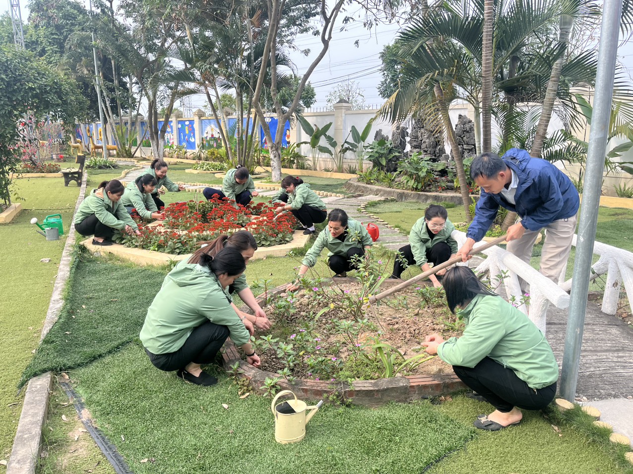 Xuân Giáp Thìn 2024, Hưởng ứng tết trồng cây" Đời đời nhớ ơn Bác Hồ" Chiều ngày 16/2/2024 lúc 17h15 phút Cán bộ, giáo viên, nhân viên trường mầm non B xã Ngũ Hiệp tham gia trồng và chăm sóc cây xanh tại khuôn viên trong trường