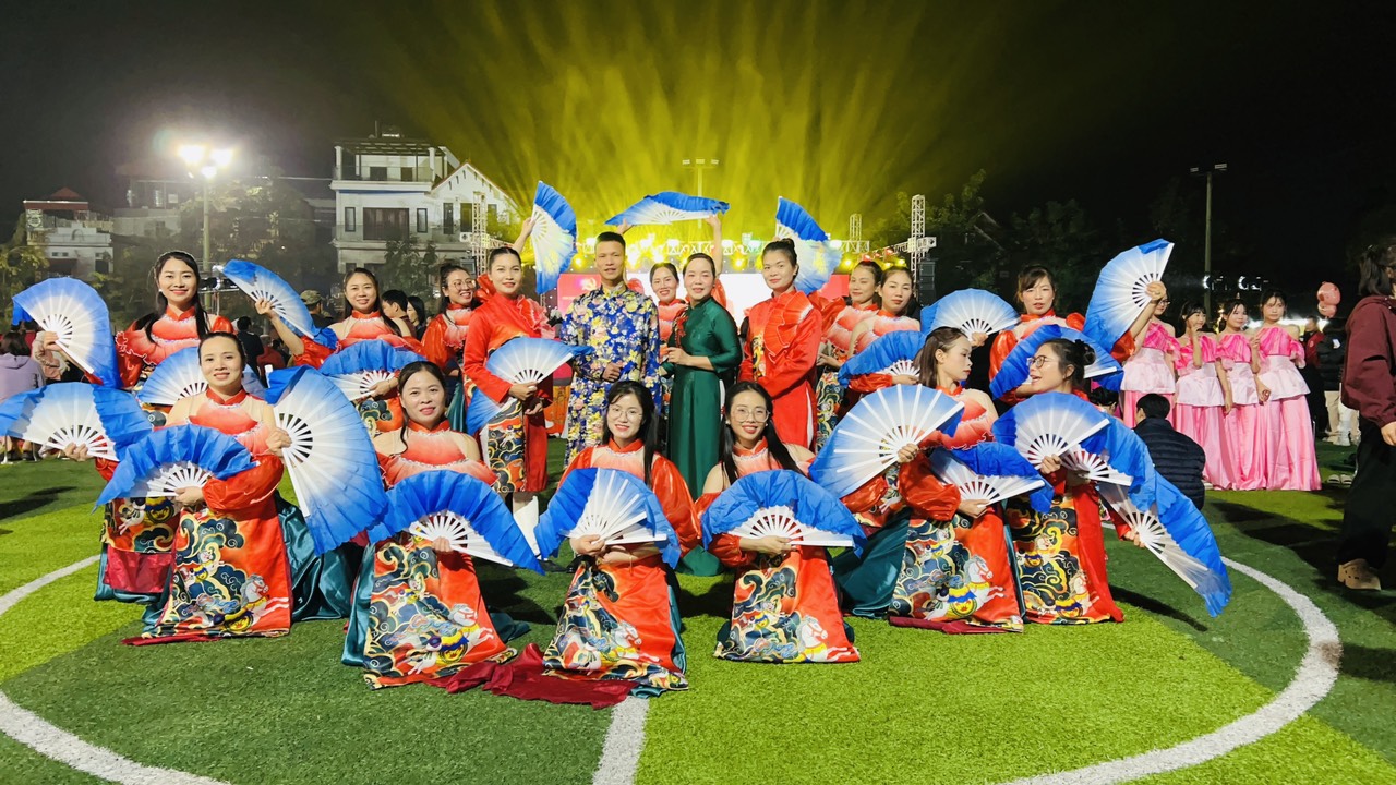 Tiết mục hát múa “Vịnh Xuân đất tổ” ca ngợi vẻ đẹp thiêng liêng của Đất Tổ Hùng Vương, thể hiện lòng biết ơn tổ tiên và niềm tự hào dân tộc.