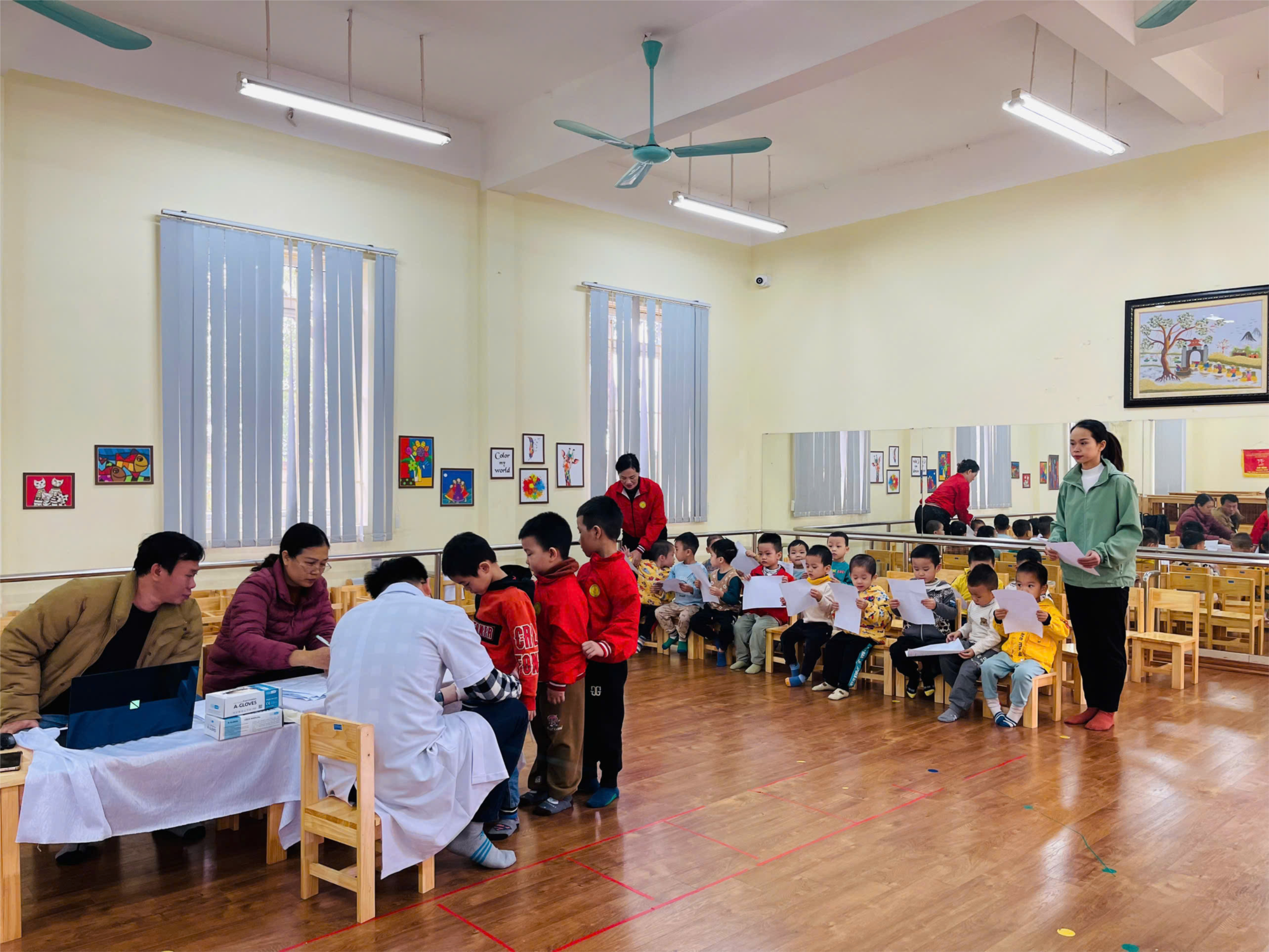 Thực hiện kế hoạch số 73/KH-UBND ngày 15/02/2023 của UBND huyện Thanh Trì về việc thực hiện đề án nâng cao chất lượng dân số giai đoạn 2022-2026; Ngày 17/12/2024 Trung tâm y tế huyện Thanh Trì tổ chức khám sàng lọc bộ phận sinh dục nam cho trẻ từ 3- 5 tuổi cho trẻ tại trường mầm non B xã Ngũ Hiệp nhằm phát hiện sớm các bệnh tật cho trẻ và can thiệp kịp thời để trẻ phát triển toàn diện, tránh nhiều hệ lụy lâu dài và chăm sóc sức khỏe cho trẻ trong tương lai.